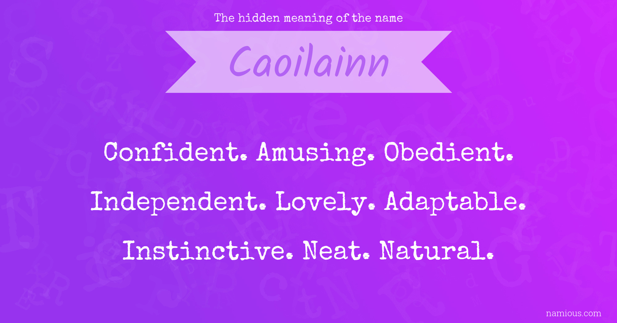 "Caoilainn is a confident, amusing, obedient, independent, lovely, adaptable, instinctive, neat and natural person."