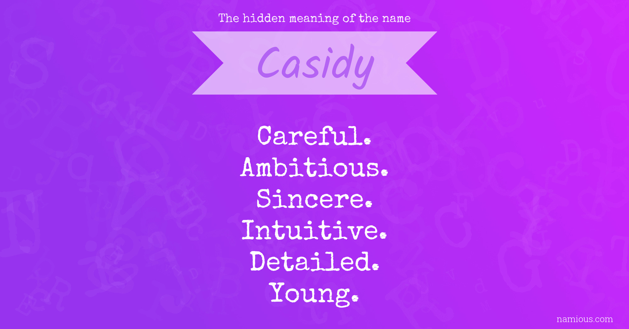 "Casidy is a careful, ambitious, sincere, intuitive, detailed and young person."