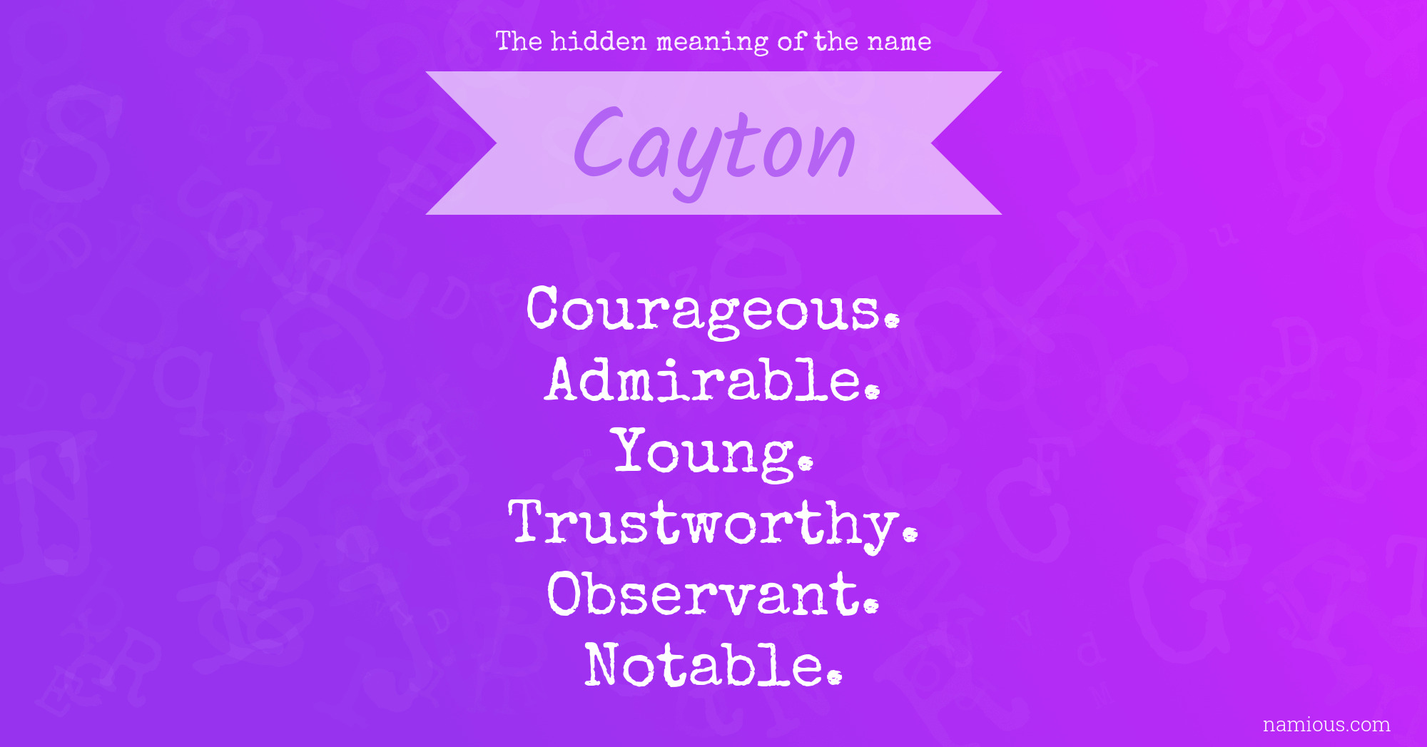 "Cayton is a courageous, admirable, young, trustworthy, observant and notable person."