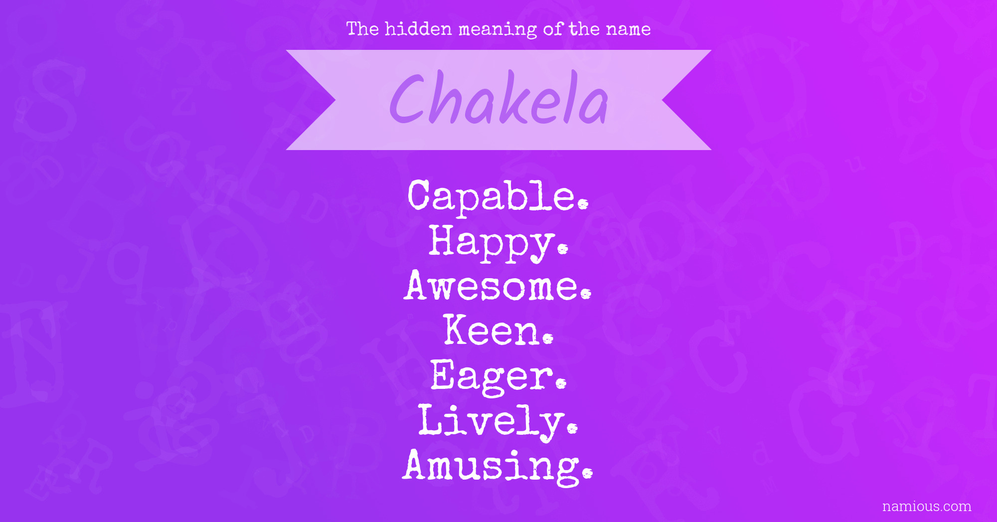 "Chakela is a capable, happy, awesome, keen, eager, lively and amusing person."