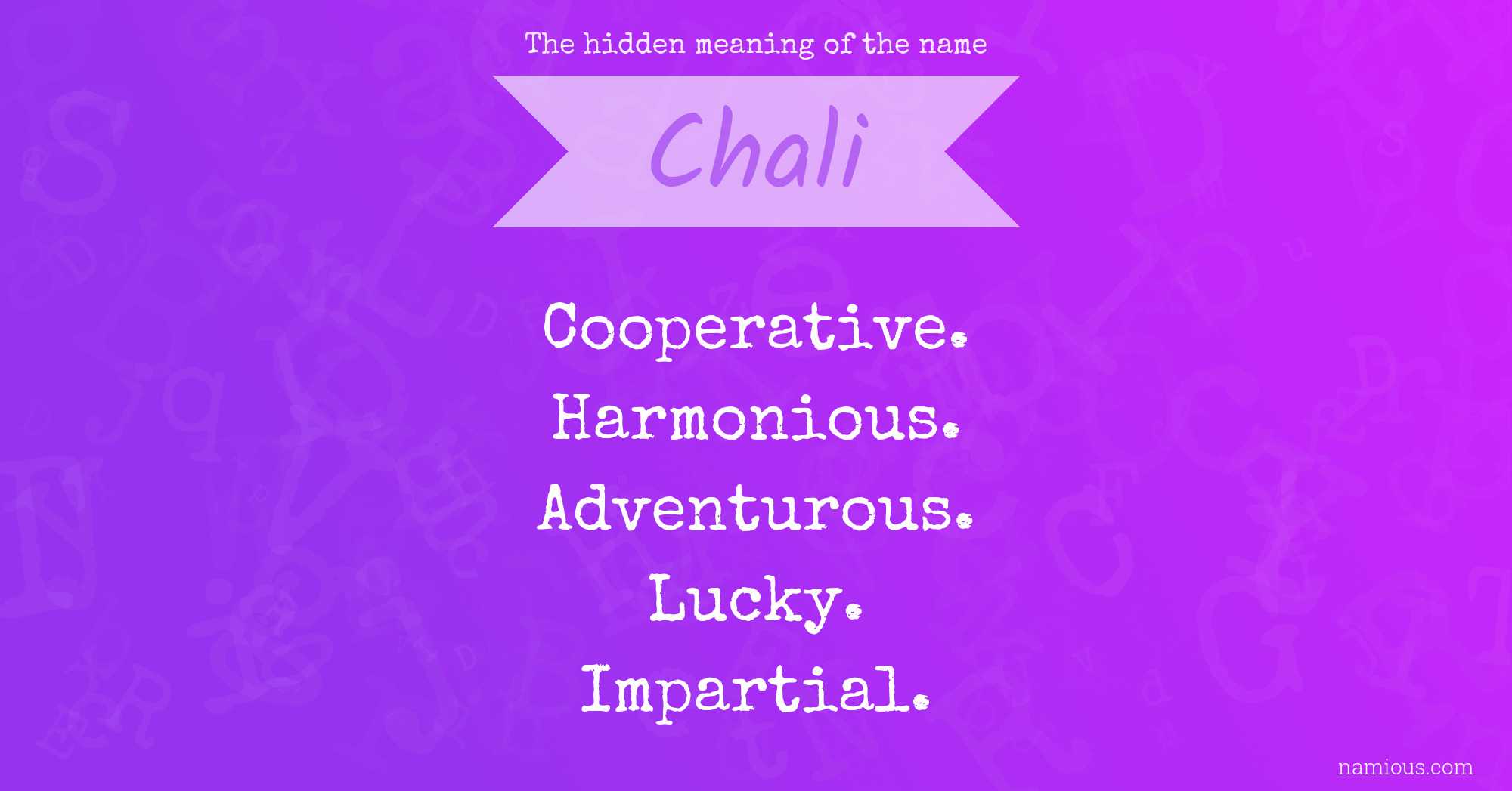 "Chali is a cooperative, harmonious, adventurous, lucky and impartial person."