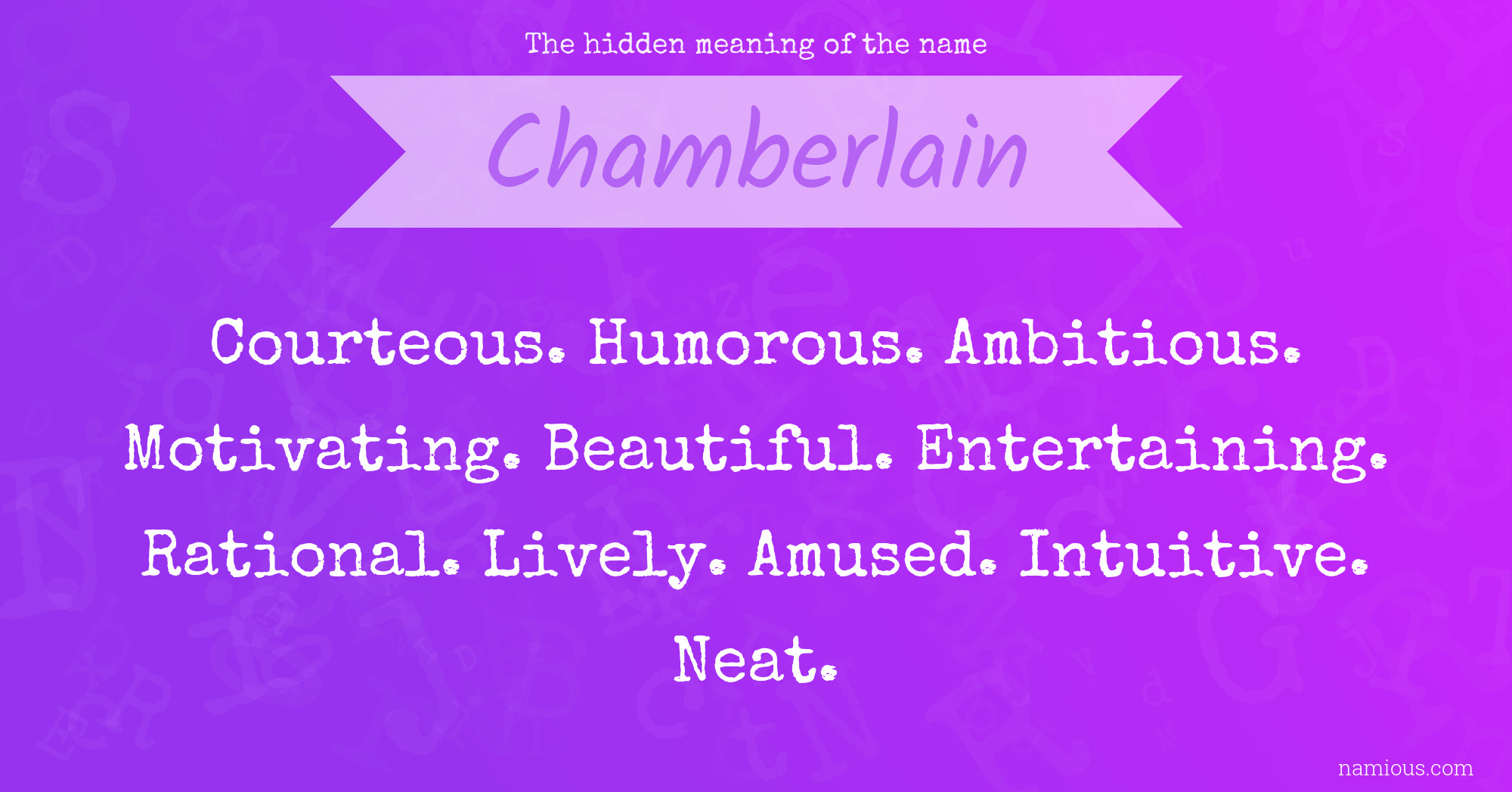"Chamberlain is a courteous, humorous, ambitious, motivating, beautiful, entertaining, rational, lively, amused, intuitive and neat person."