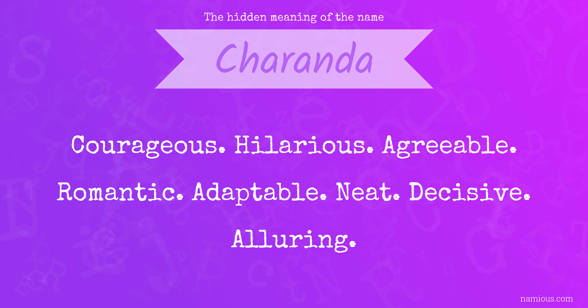 "Charanda is a courageous, hilarious, agreeable, romantic, adaptable, neat, decisive and alluring person."