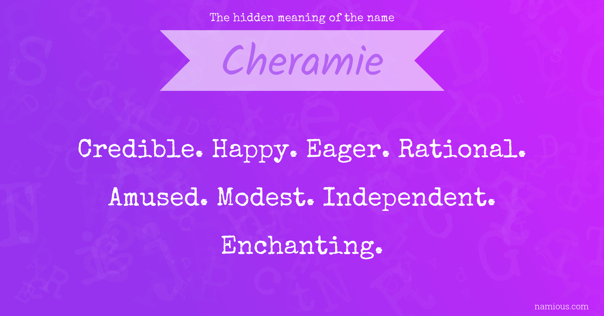 "Cheramie is a credible, happy, eager, rational, amused, modest, independent and enchanting person."