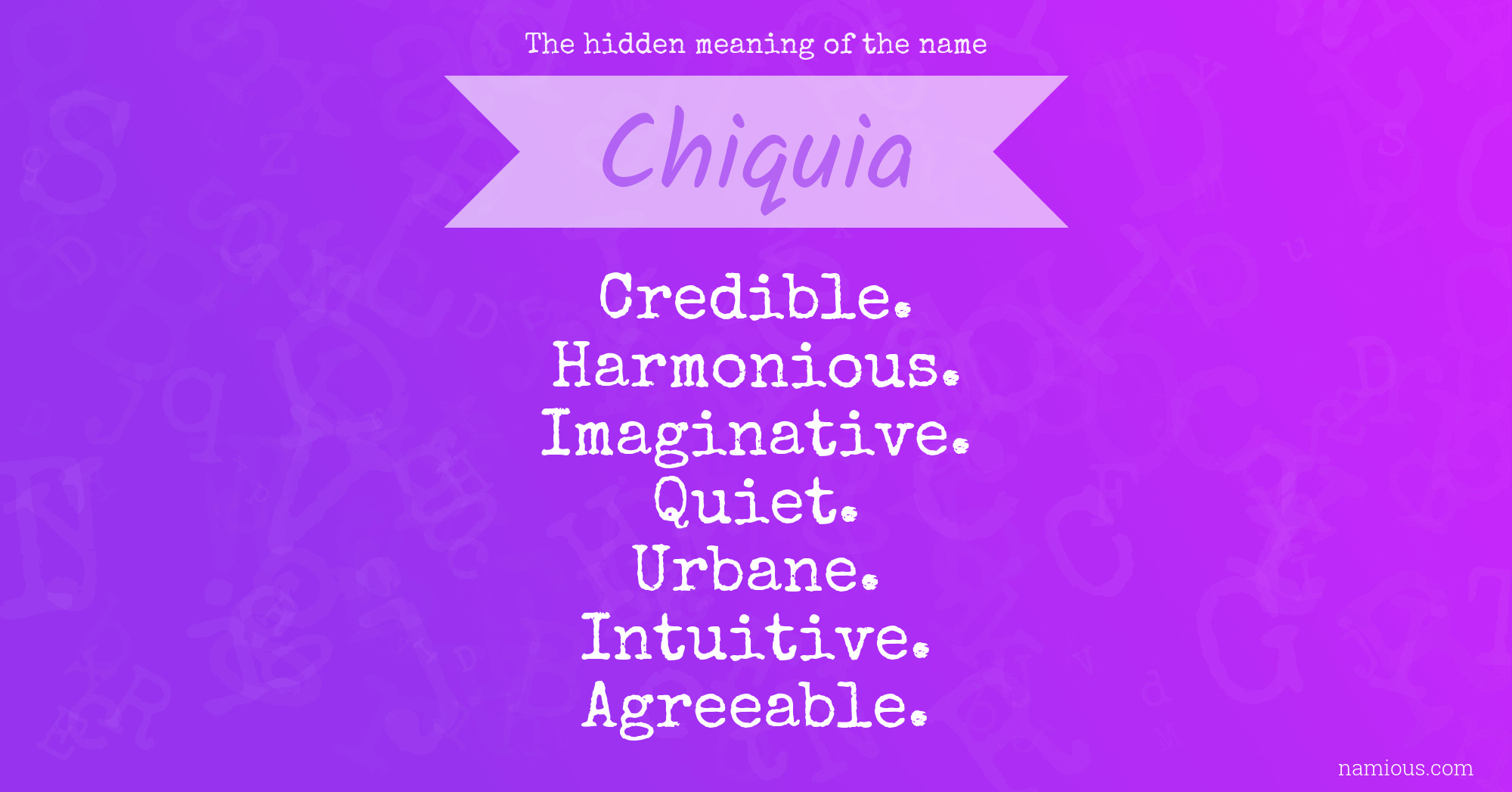 "Chiquia is a credible, harmonious, imaginative, quiet, urbane, intuitive and agreeable person."