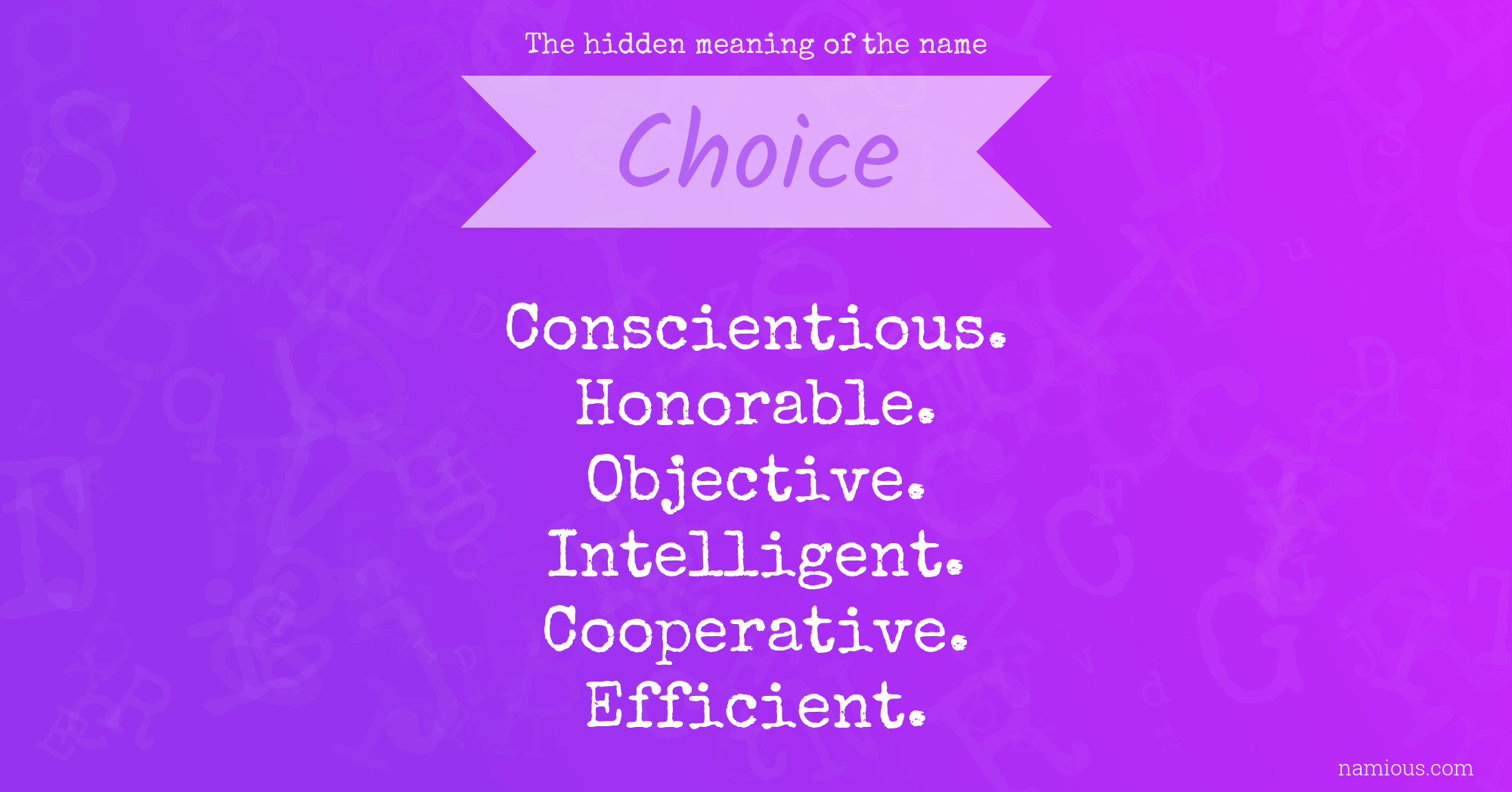 "Choice is a conscientious, honorable, objective, intelligent, cooperative and efficient person."