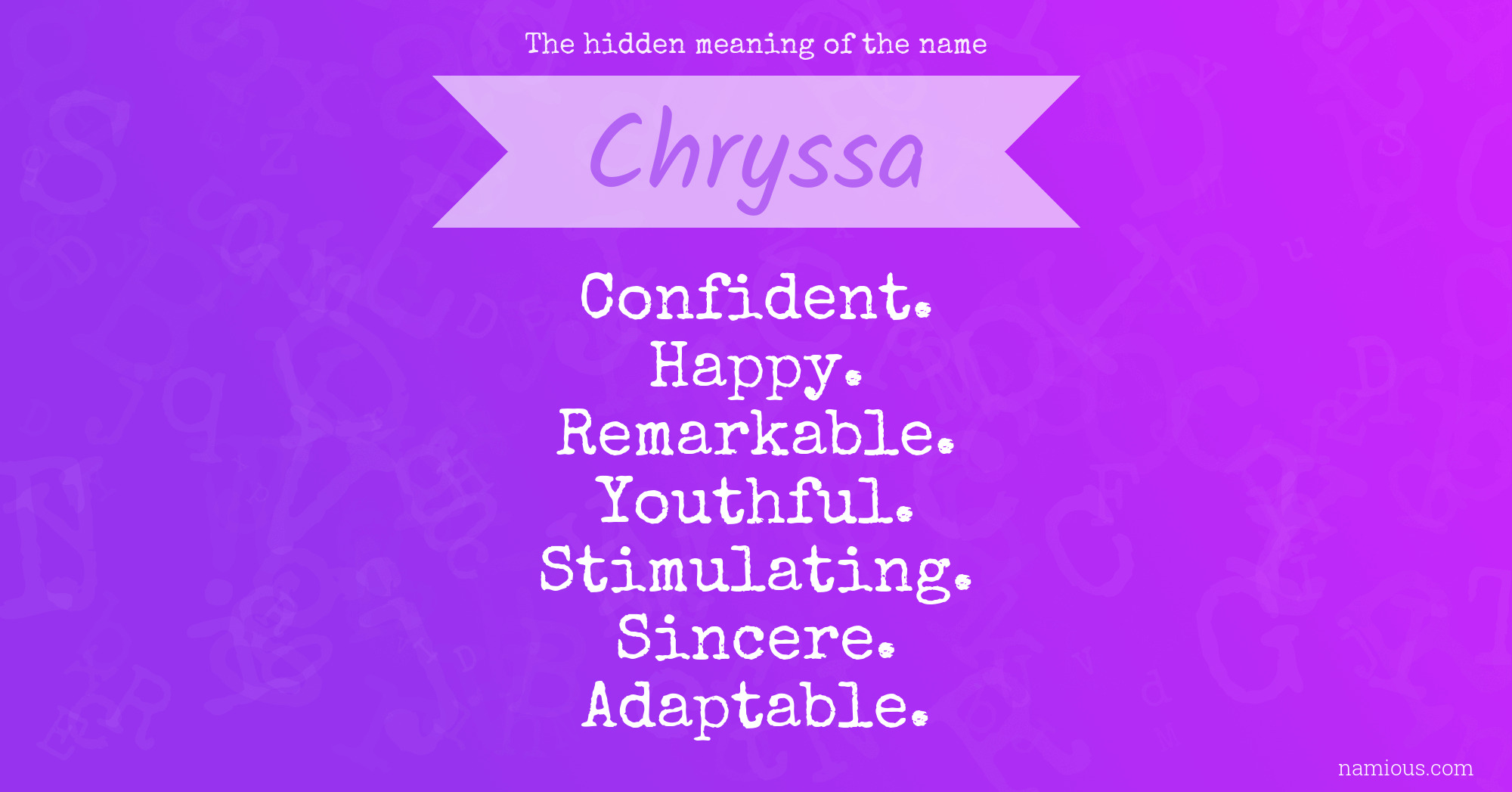 "Chryssa is a confident, happy, remarkable, youthful, stimulating, sincere and adaptable person."