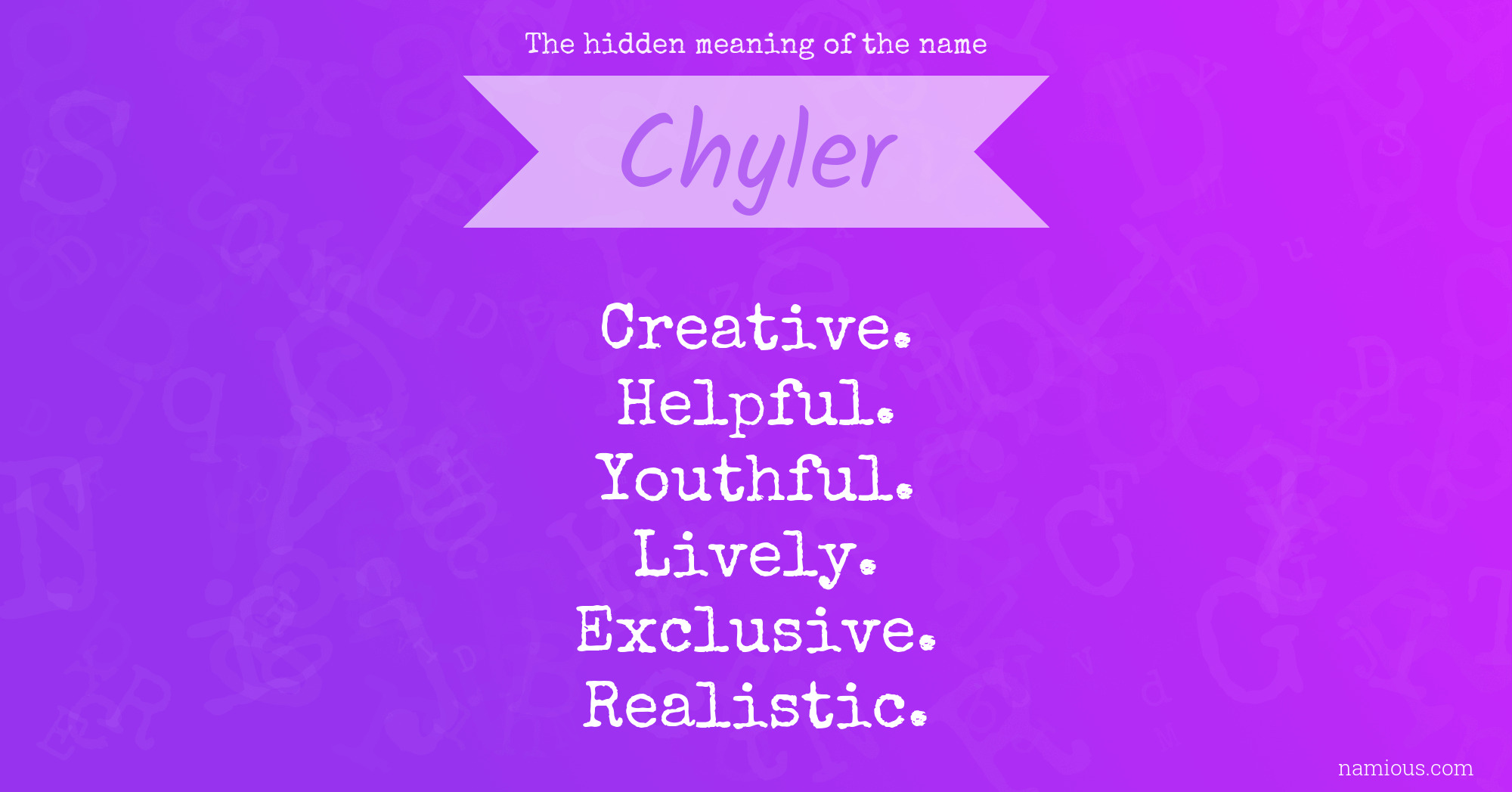 "Chyler is a creative, helpful, youthful, lively, exclusive and realistic person."