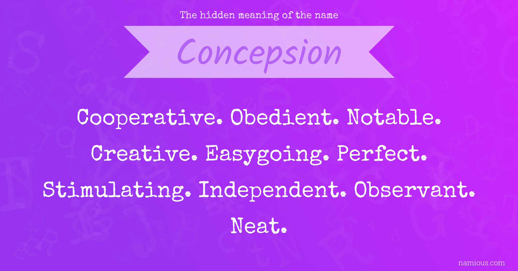 "Concepsion is a cooperative, obedient, notable, creative, easygoing, perfect, stimulating, independent, observant and neat person."