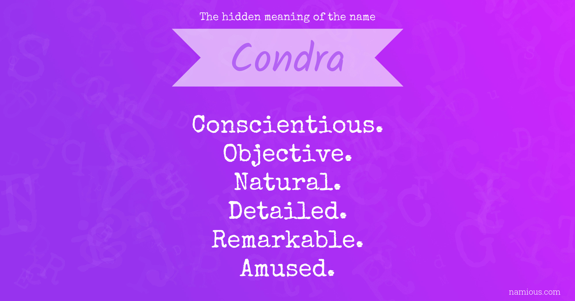 "Condra is a conscientious, objective, natural, detailed, remarkable and amused person."