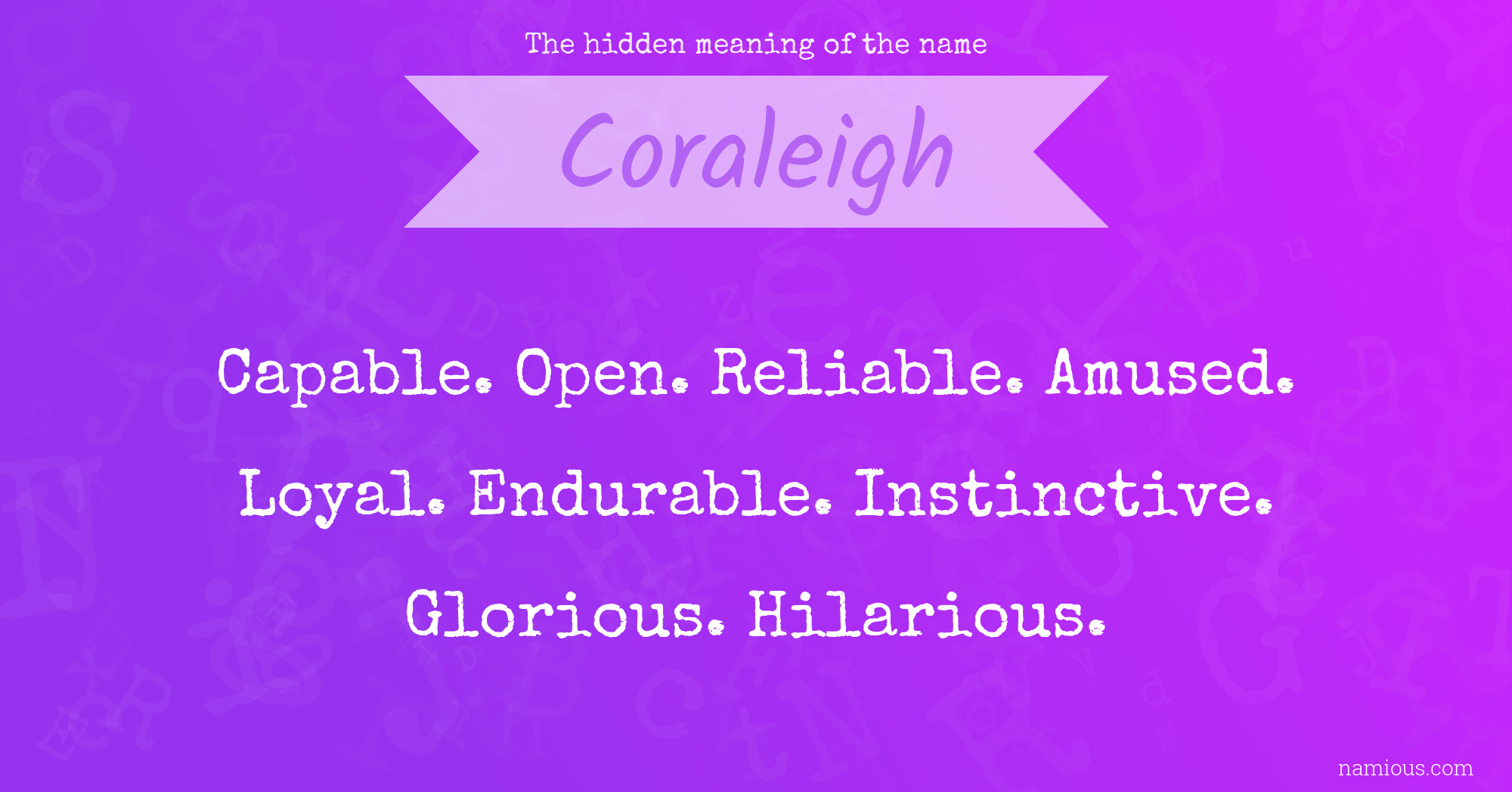 "Coraleigh is a capable, open, reliable, amused, loyal, endurable, instinctive, glorious and hilarious person."