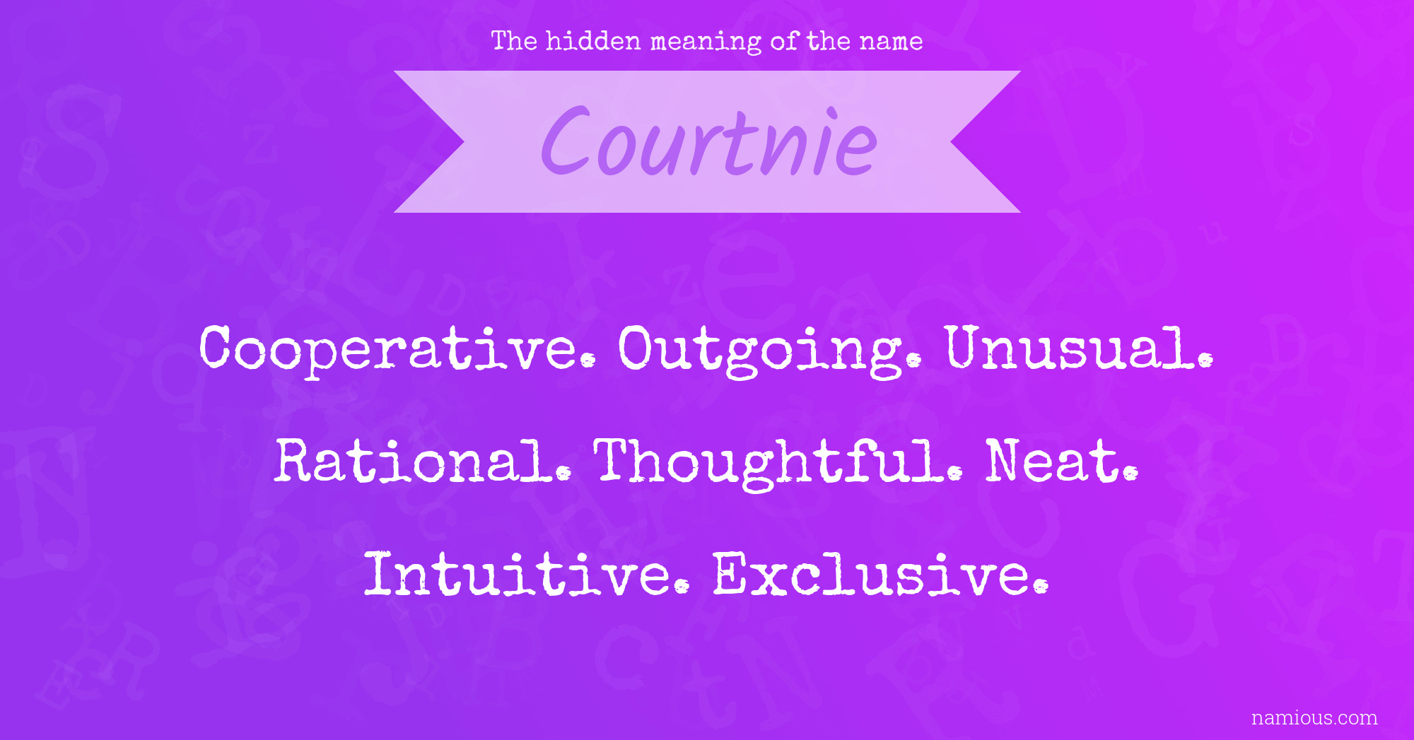 "Courtnie is a cooperative, outgoing, unusual, rational, thoughtful, neat, intuitive and exclusive person."