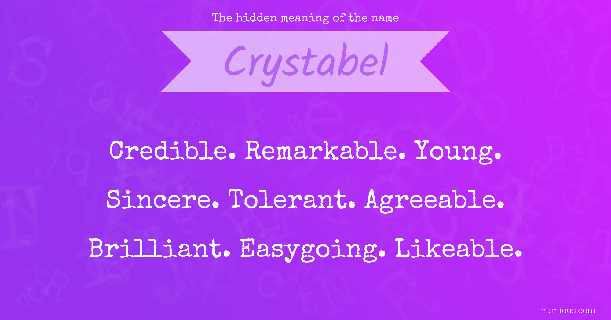 "Crystabel is a credible, remarkable, young, sincere, tolerant, agreeable, brilliant, easygoing and likeable person."
