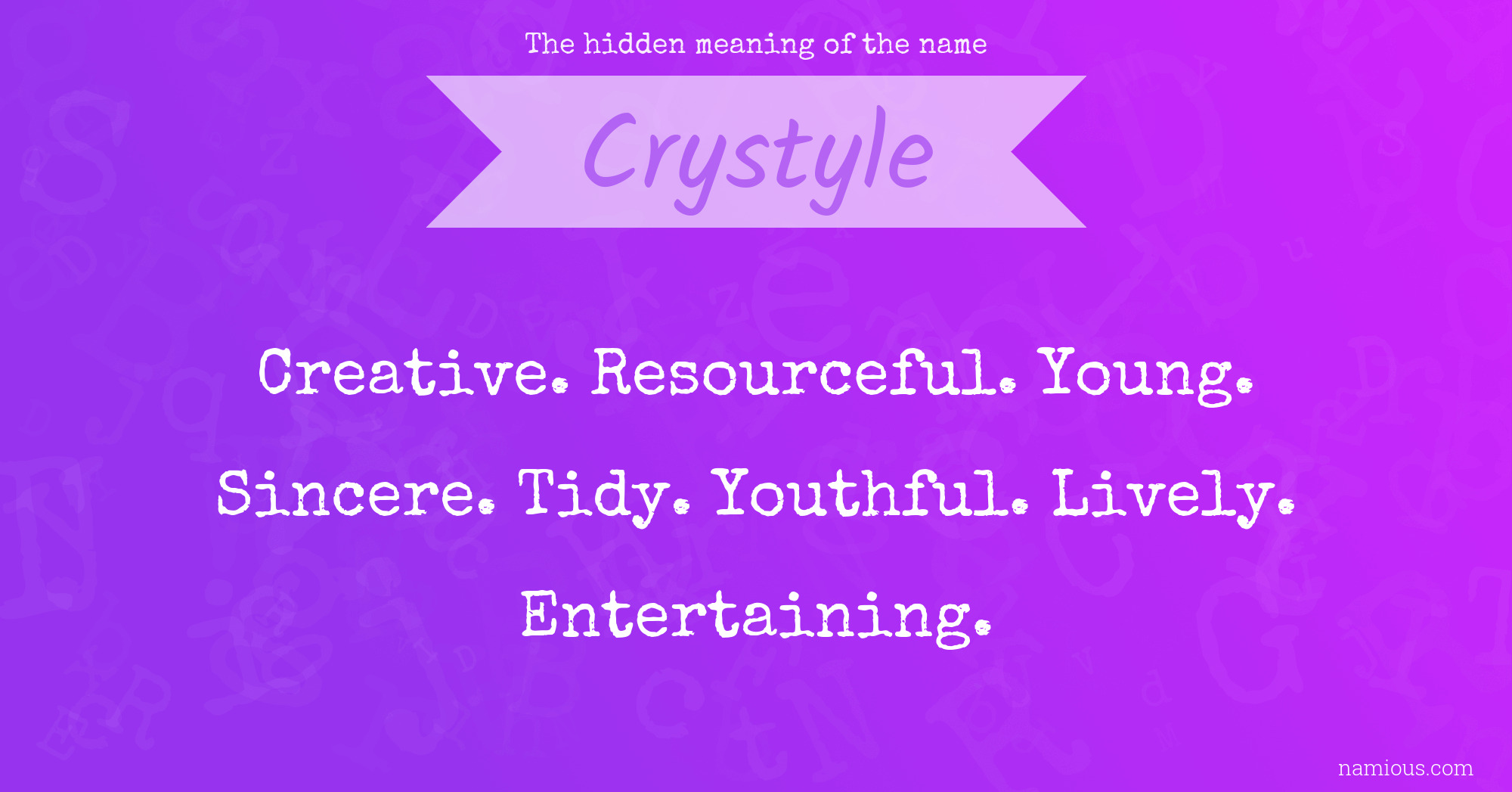 "Crystyle is a creative, resourceful, young, sincere, tidy, youthful, lively and entertaining person."