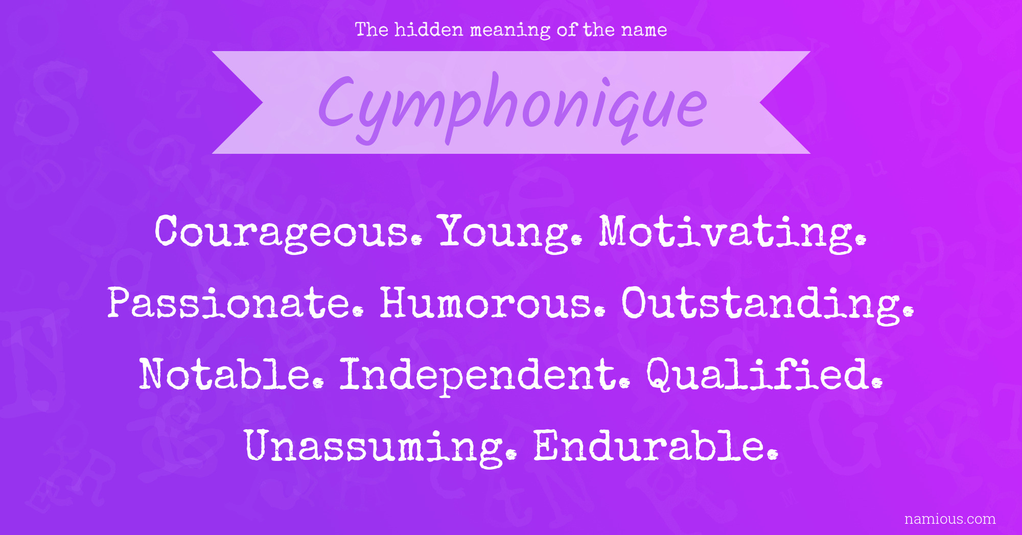 "Cymphonique is a courageous, young, motivating, passionate, humorous, outstanding, notable, independent, qualified, unassuming and endurable person."