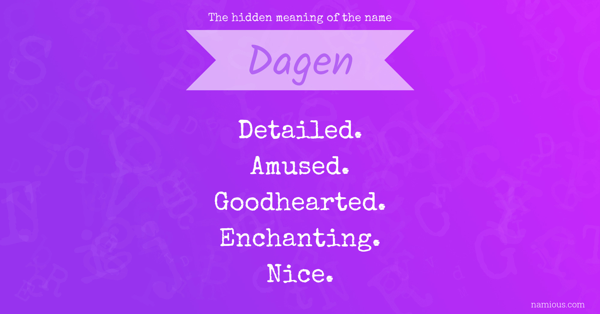 "Dagen is a detailed, amused, goodhearted, enchanting and nice person."
