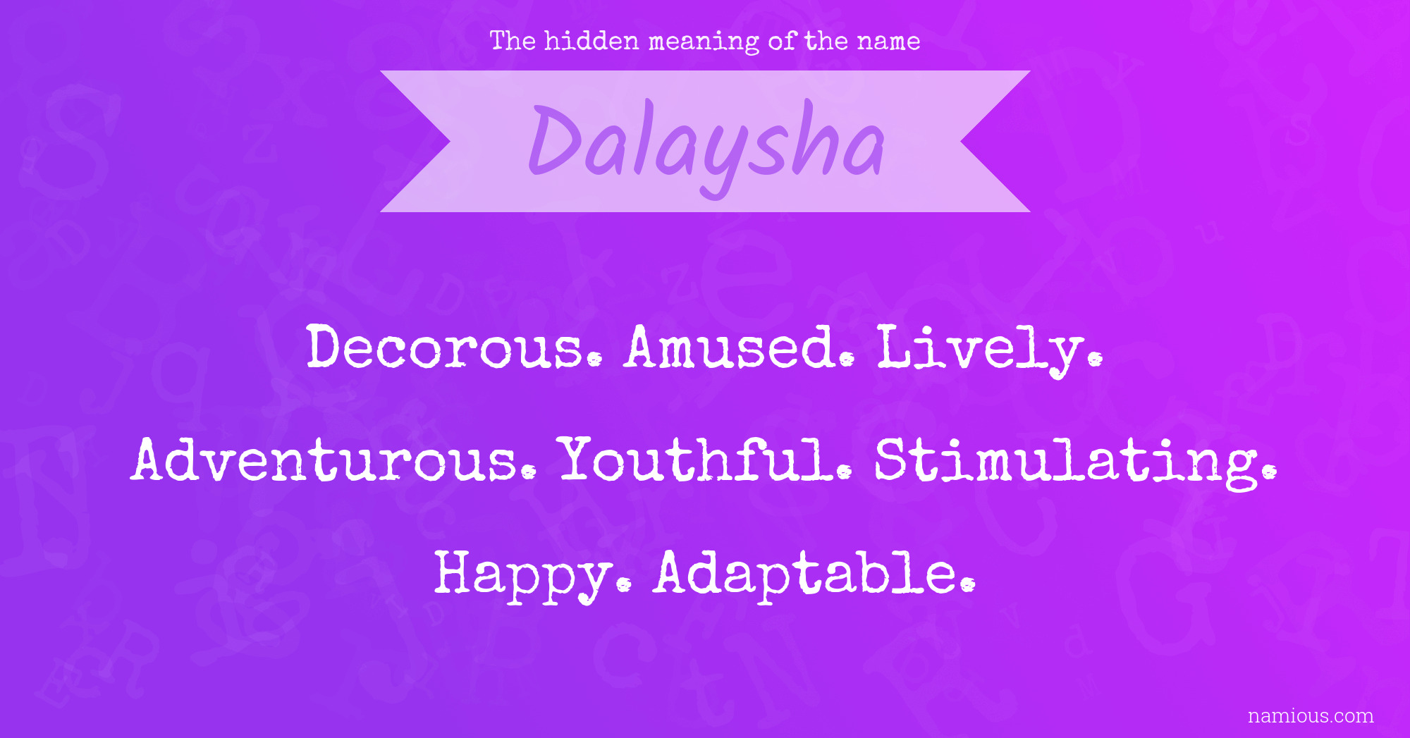 "Dalaysha is a decorous, amused, lively, adventurous, youthful, stimulating, happy and adaptable person."