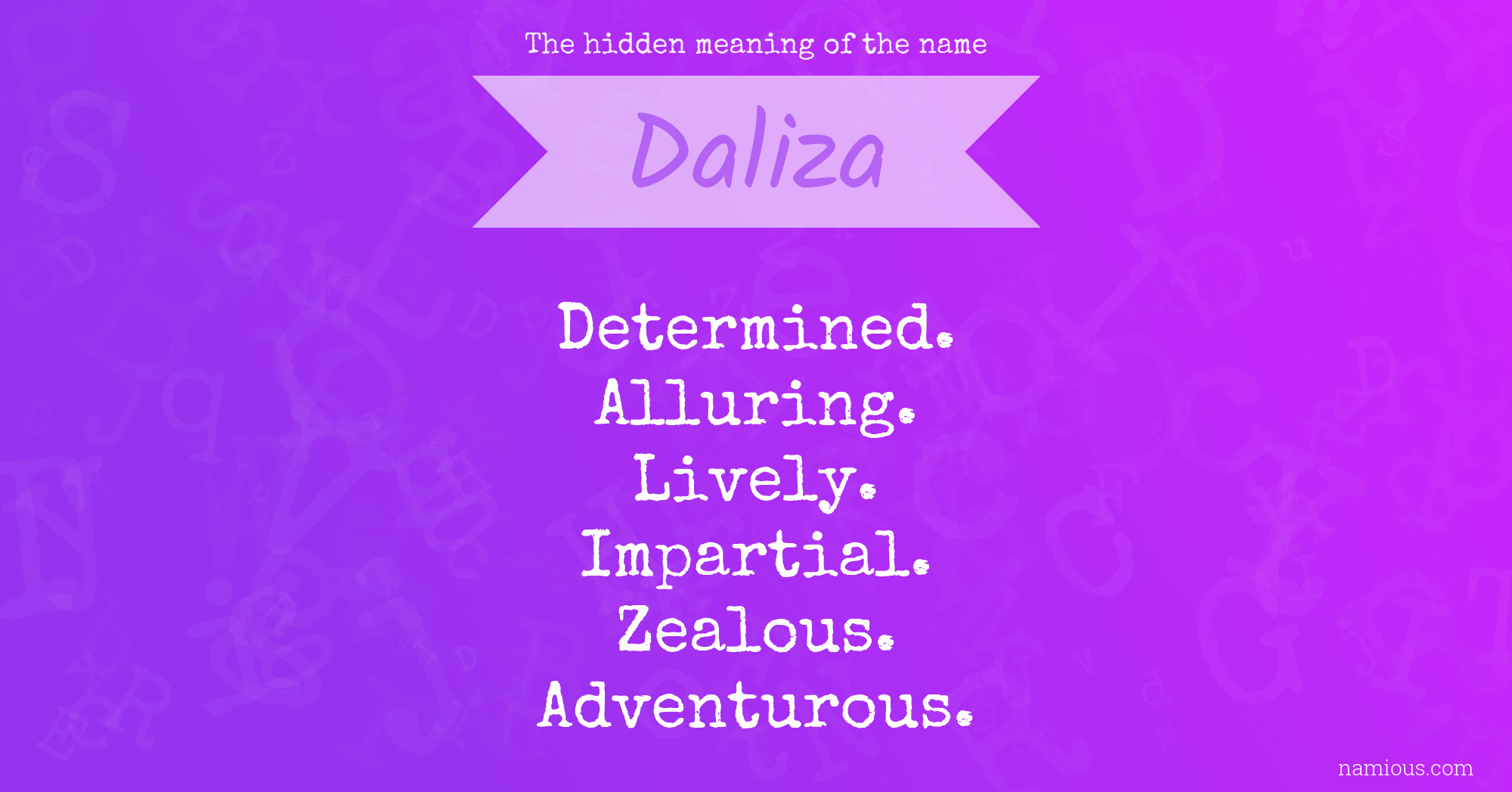 "Daliza is a determined, alluring, lively, impartial, zealous and adventurous person."
