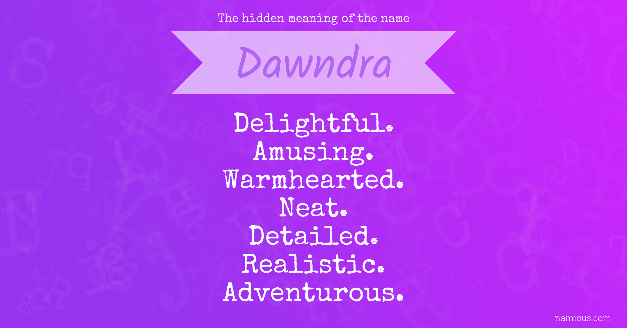 "Dawndra is a delightful, amusing, warmhearted, neat, detailed, realistic and adventurous person."