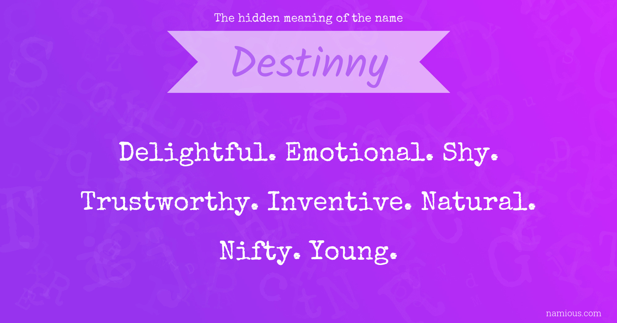 "Destinny is a delightful, emotional, shy, trustworthy, inventive, natural, nifty and young person."
