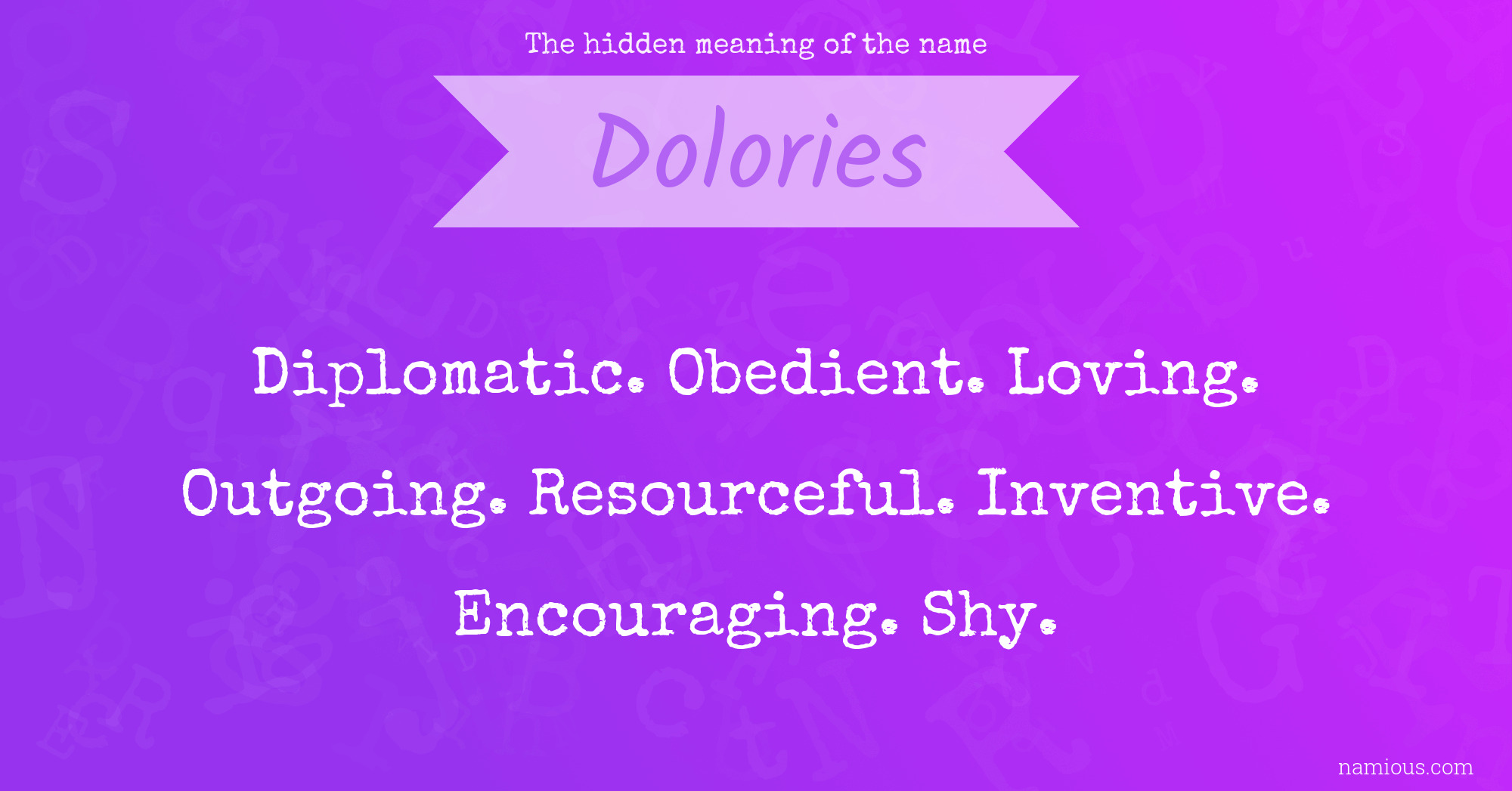 "Dolories is a diplomatic, obedient, loving, outgoing, resourceful, inventive, encouraging and shy person."