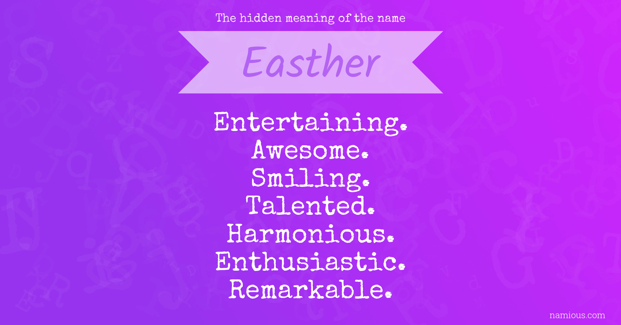 "Easther is an entertaining, awesome, smiling, talented, harmonious, enthusiastic and remarkable person."