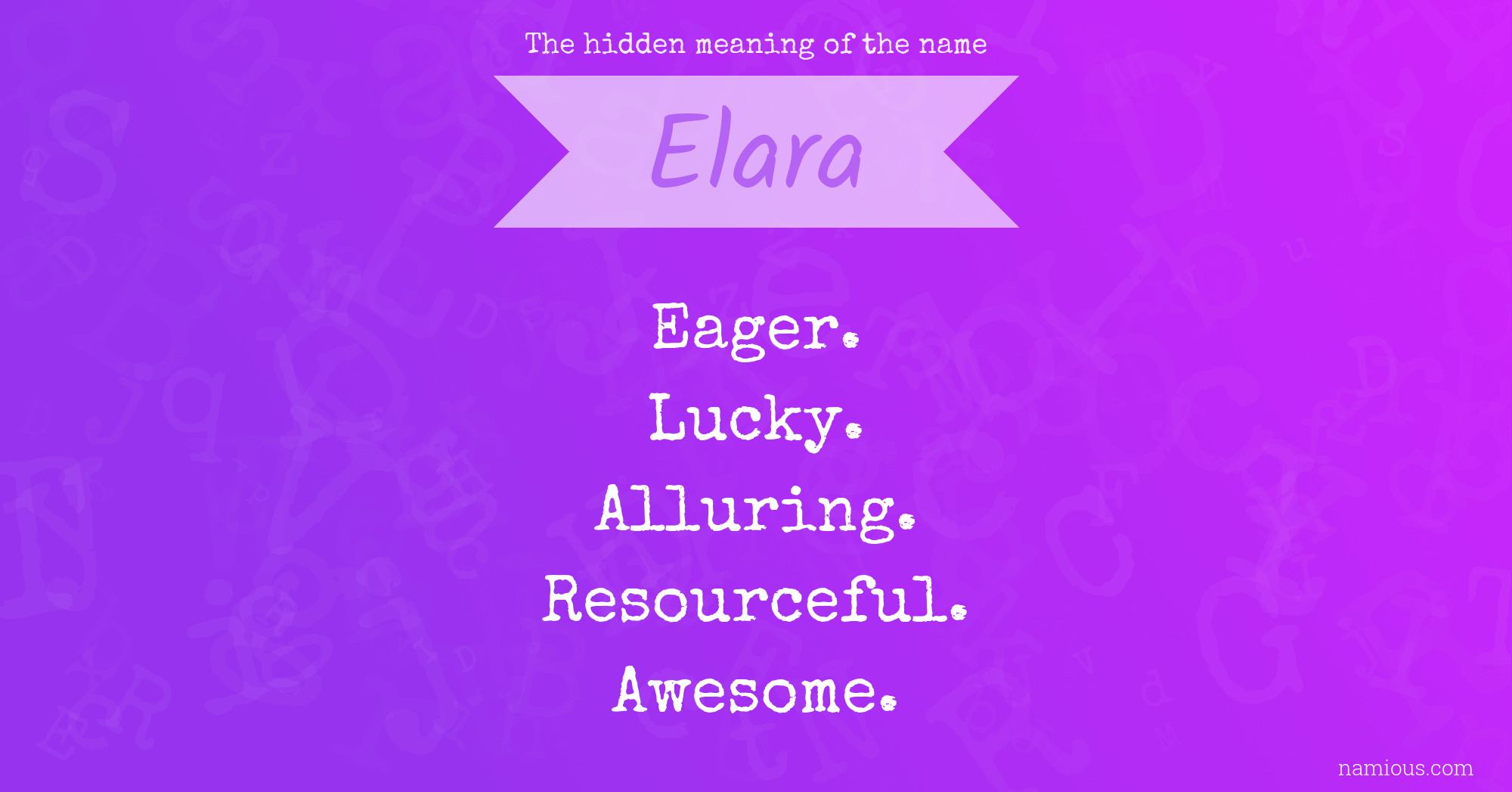 "Elara is an eager, lucky, alluring, resourceful and awesome person."