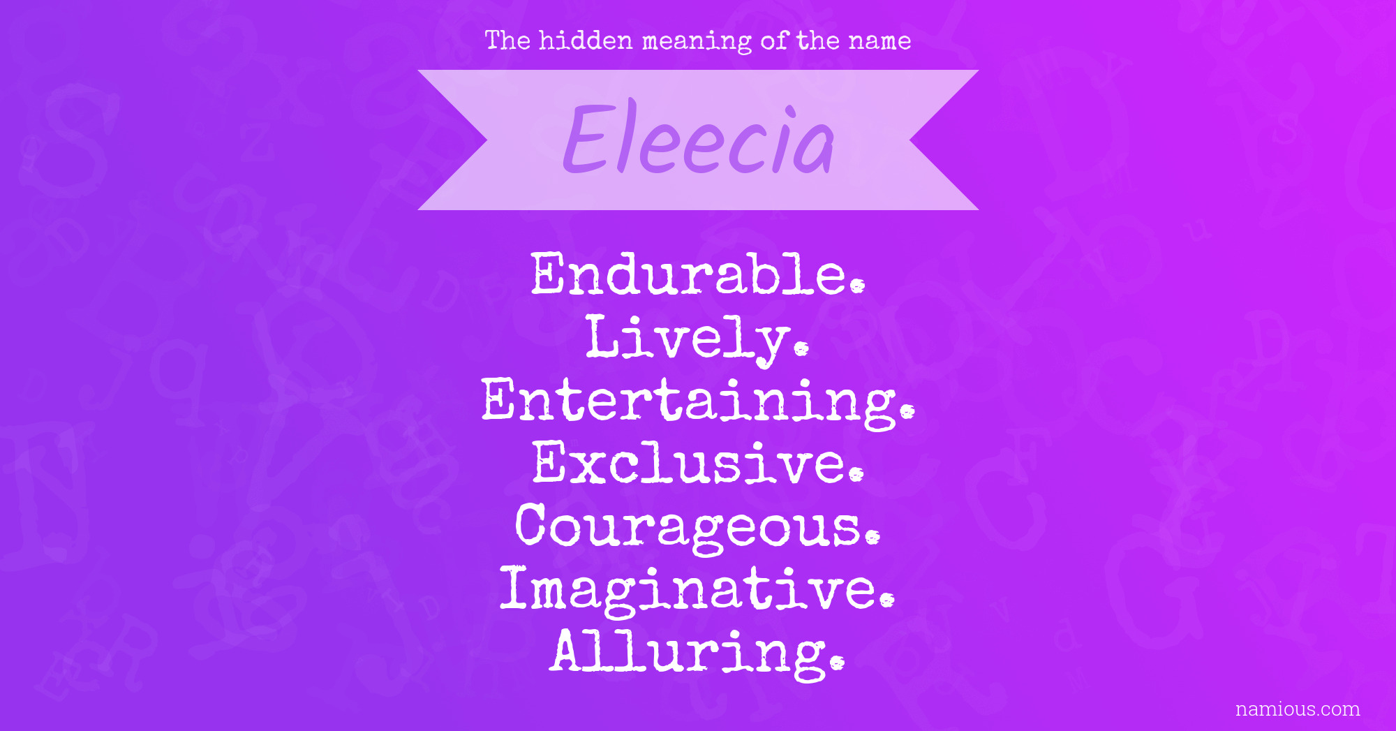 "Eleecia is an endurable, lively, entertaining, exclusive, courageous, imaginative and alluring person."