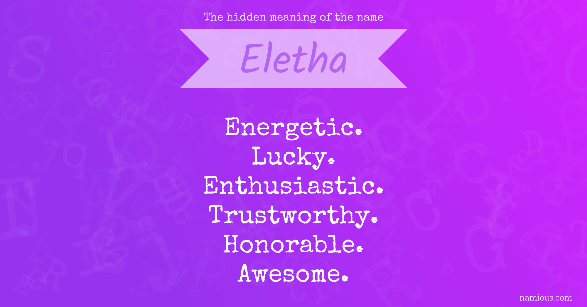 "Eletha is an energetic, lucky, enthusiastic, trustworthy, honorable and awesome person."