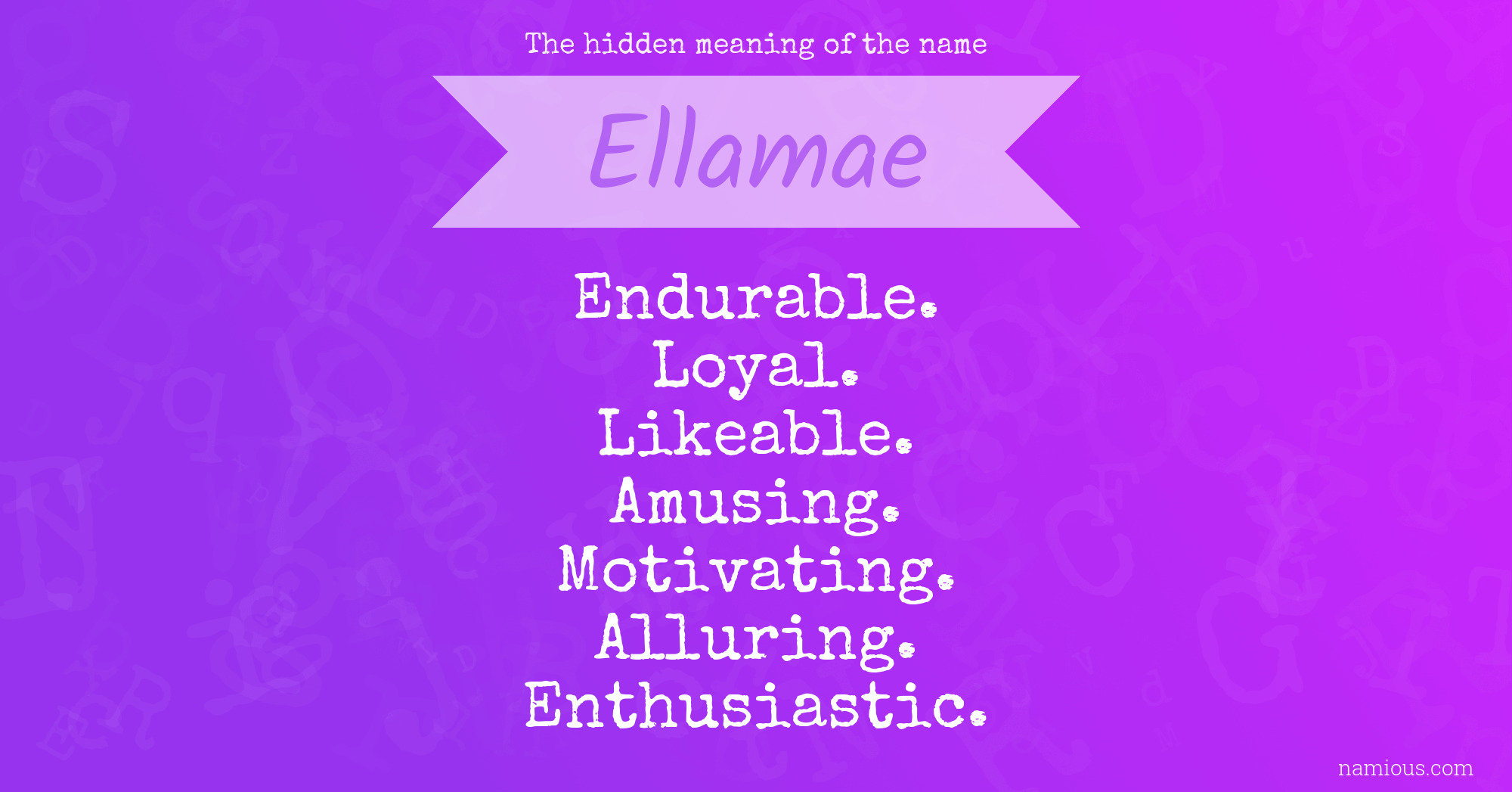 "Ellamae is an endurable, loyal, likeable, amusing, motivating, alluring and enthusiastic person."