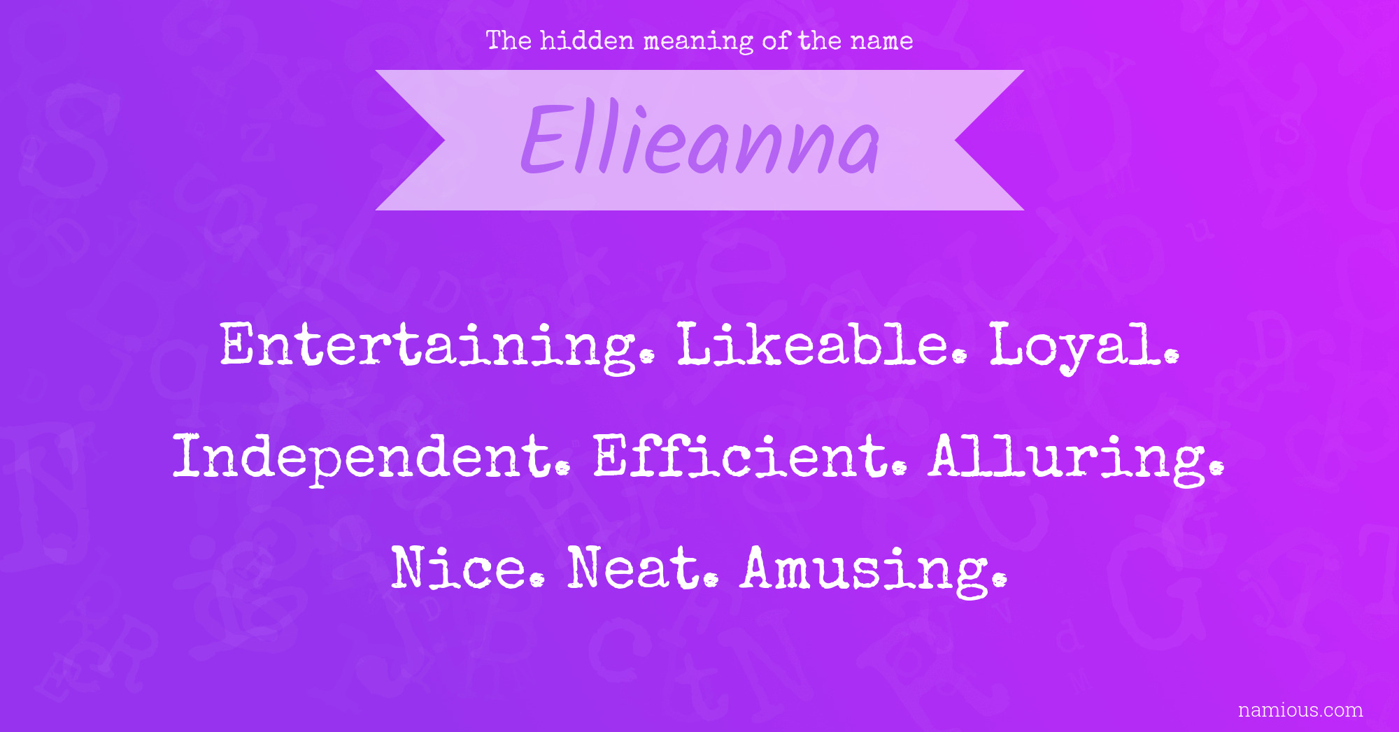 "Ellieanna is an entertaining, likeable, loyal, independent, efficient, alluring, nice, neat and amusing person."