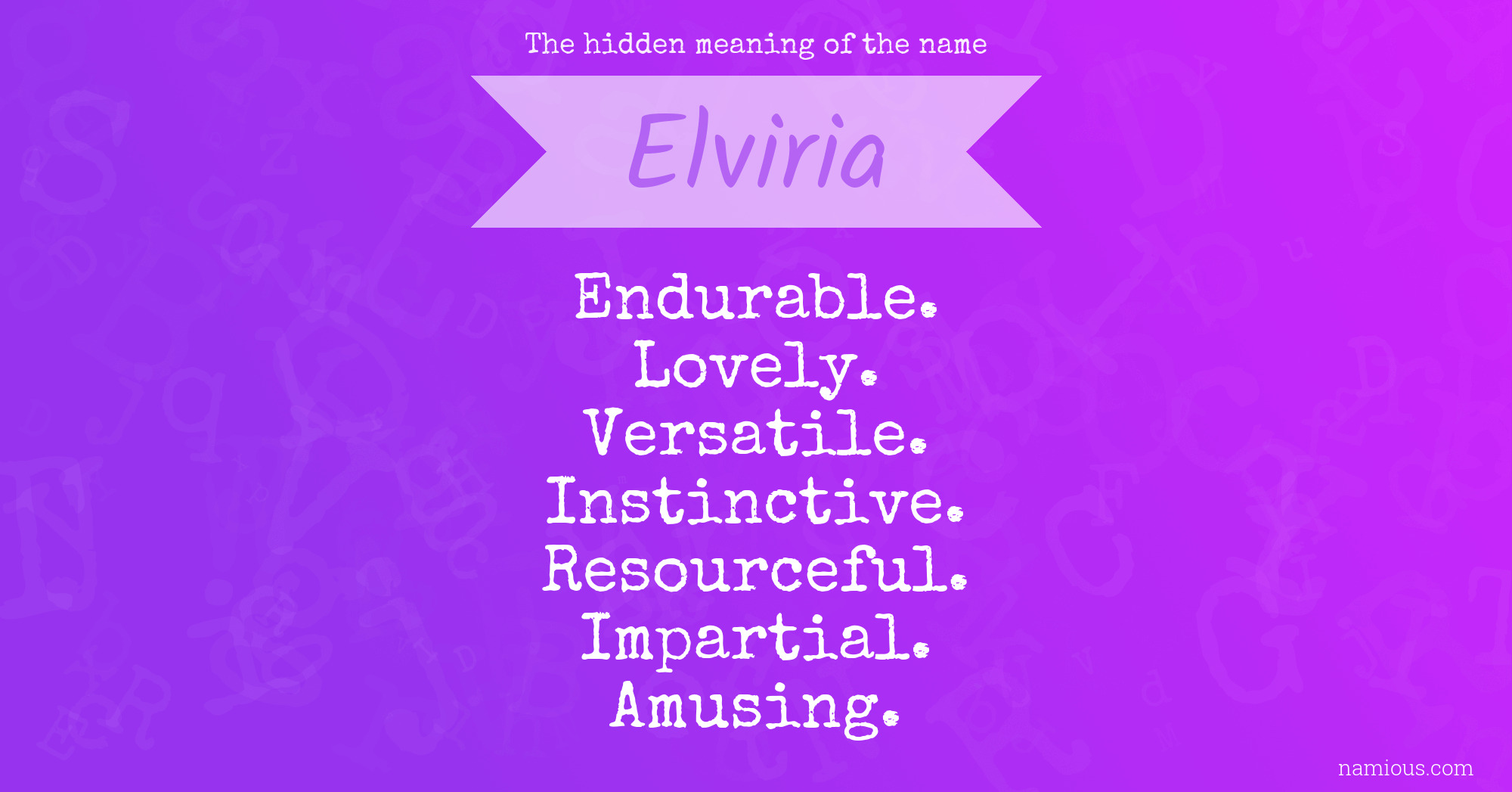 "Elviria is an endurable, lovely, versatile, instinctive, resourceful, impartial and amusing person."