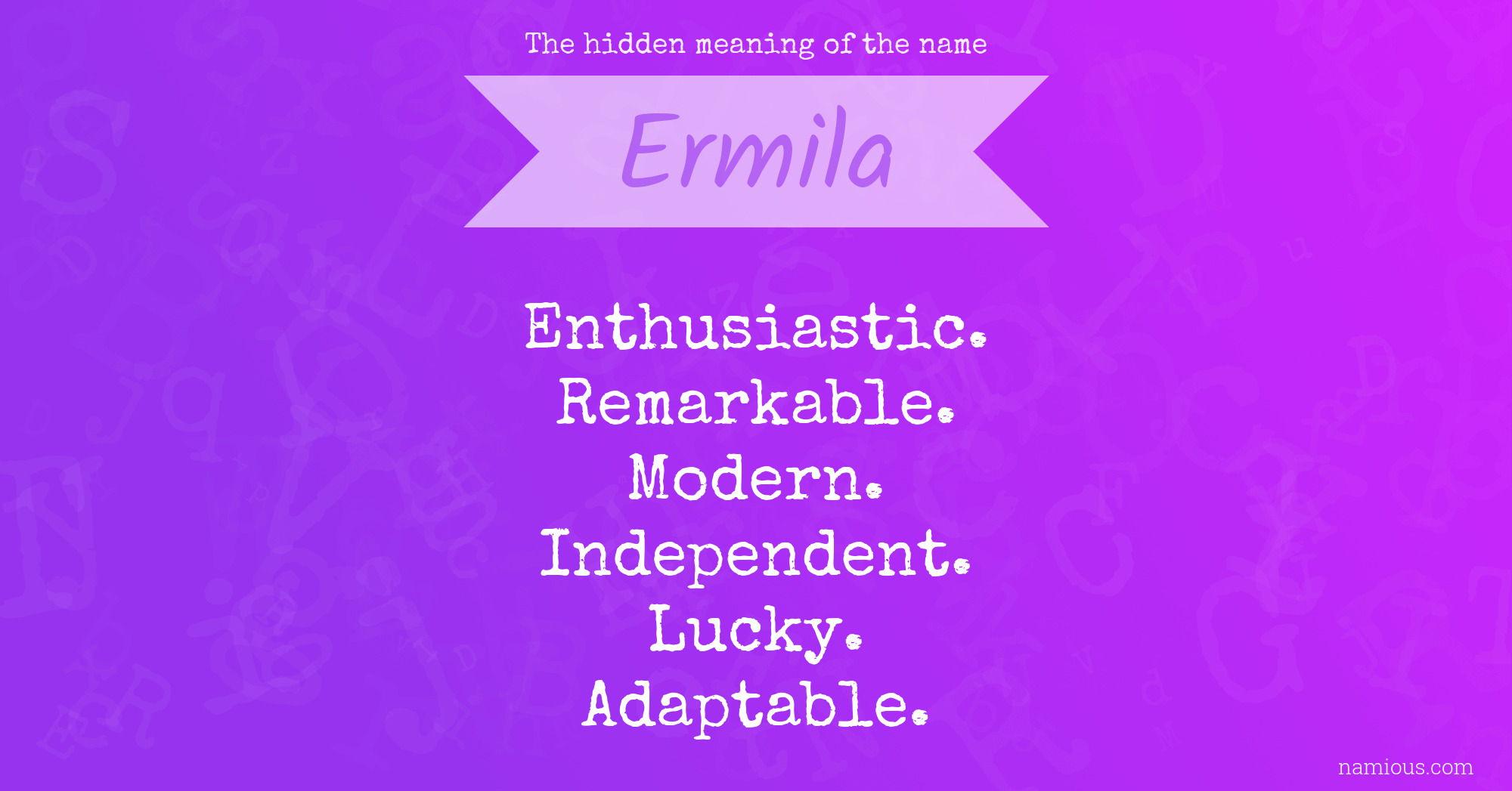 "Ermila is an enthusiastic, remarkable, modern, independent, lucky and adaptable person."