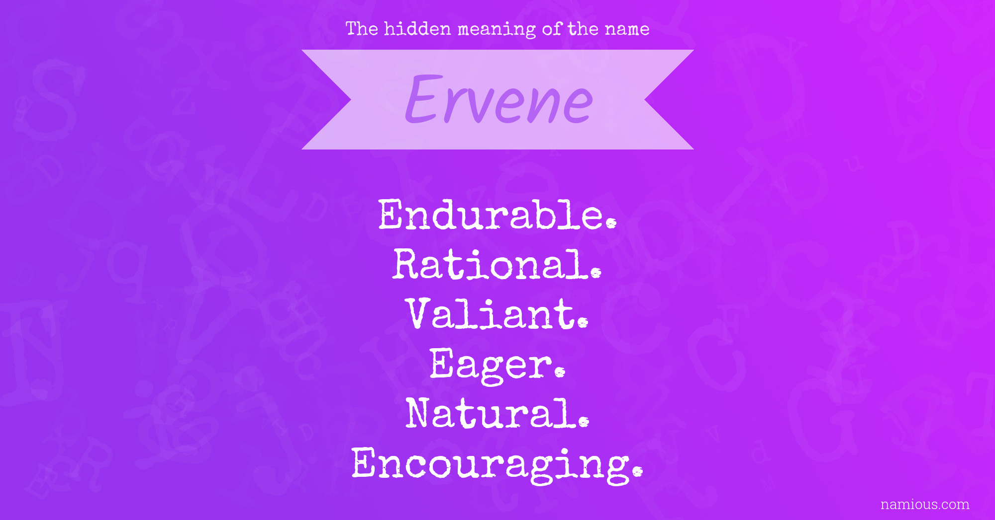 "Ervene is an endurable, rational, valiant, eager, natural and encouraging person."