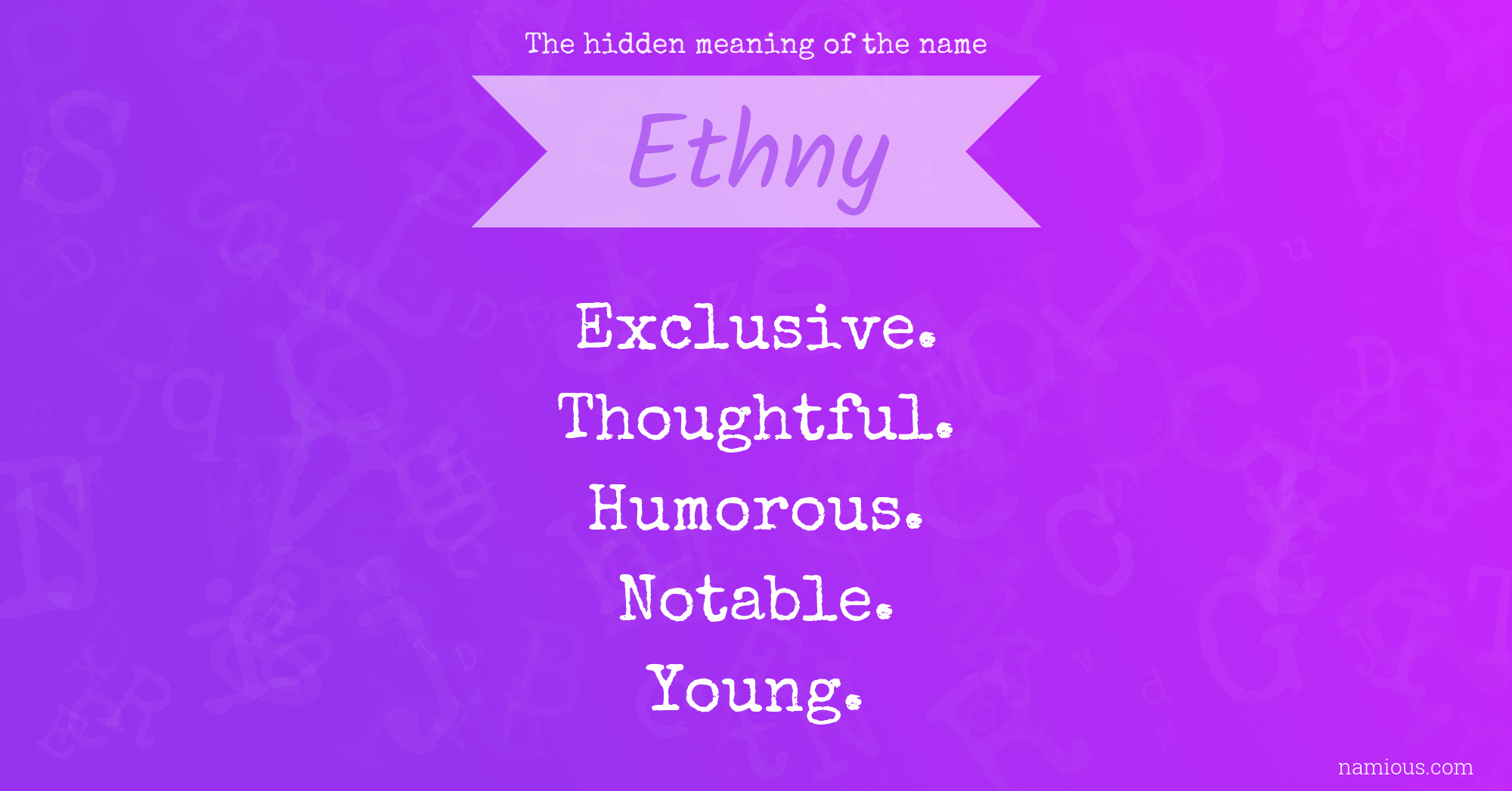 "Ethny is an exclusive, thoughtful, humorous, notable and young person."