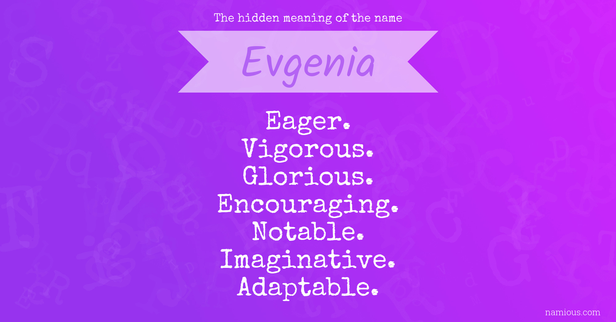 "Evgenia is an eager, vigorous, glorious, encouraging, notable, imaginative and adaptable person."