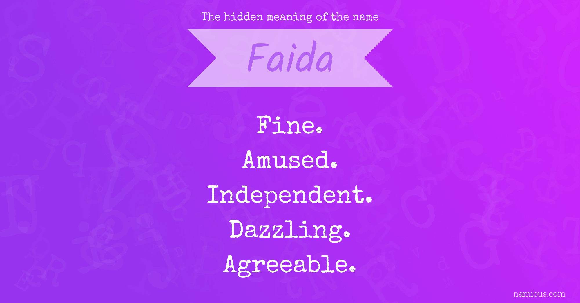 "Faida is a fine, amused, independent, dazzling and agreeable person."