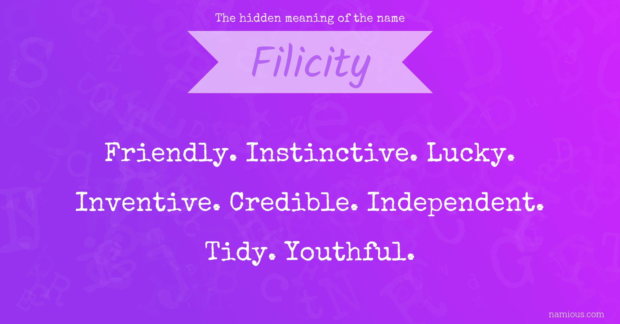 "Filicity is a friendly, instinctive, lucky, inventive, credible, independent, tidy and youthful person."