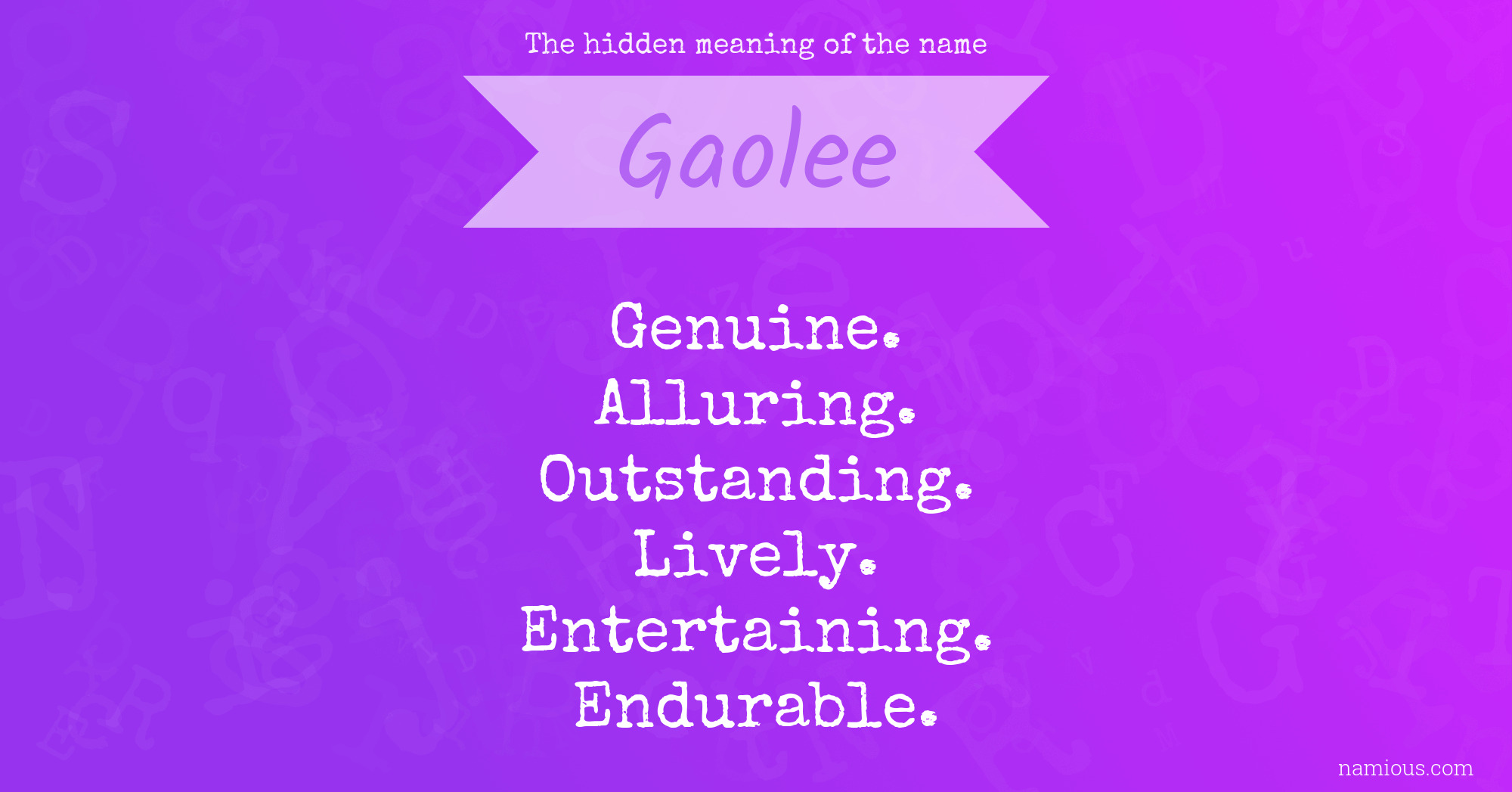 "Gaolee is a genuine, alluring, outstanding, lively, entertaining and endurable person."