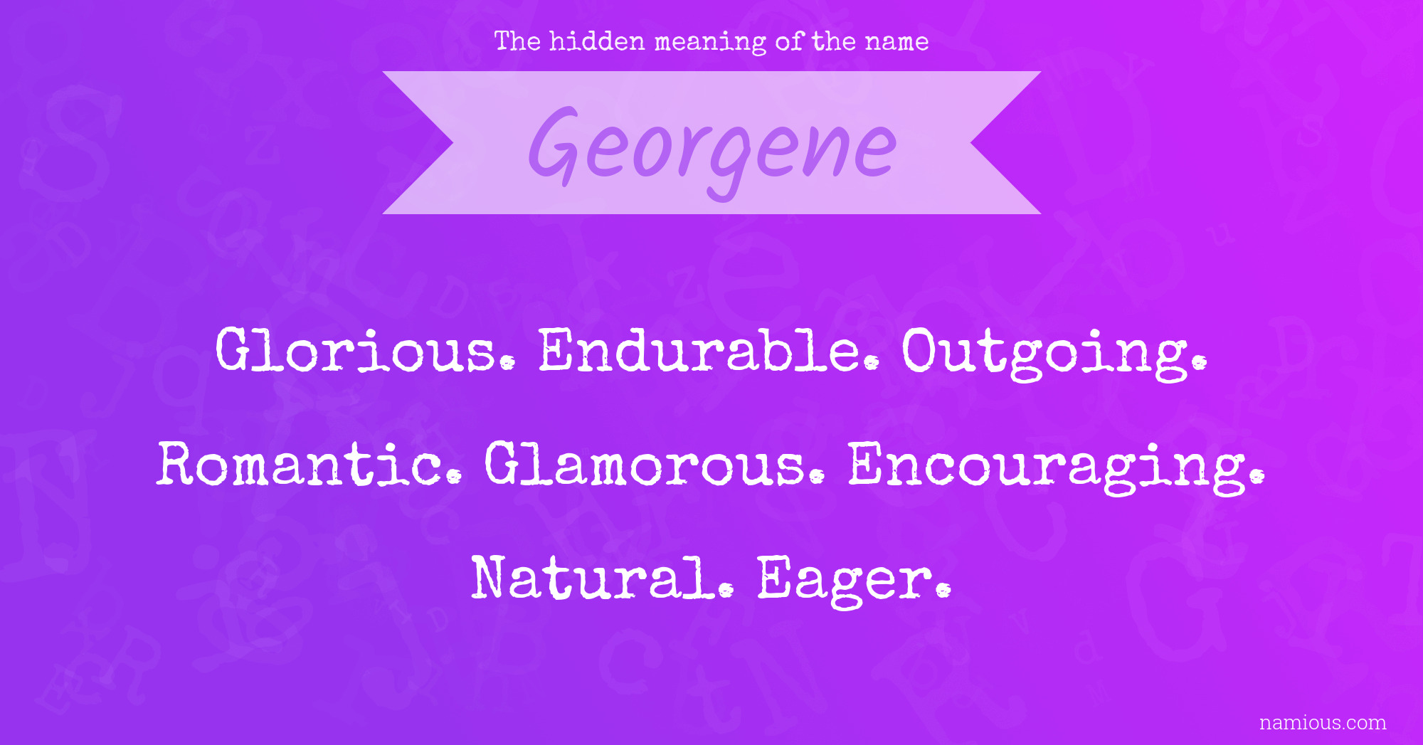 "Georgene is a glorious, endurable, outgoing, romantic, glamorous, encouraging, natural and eager person."