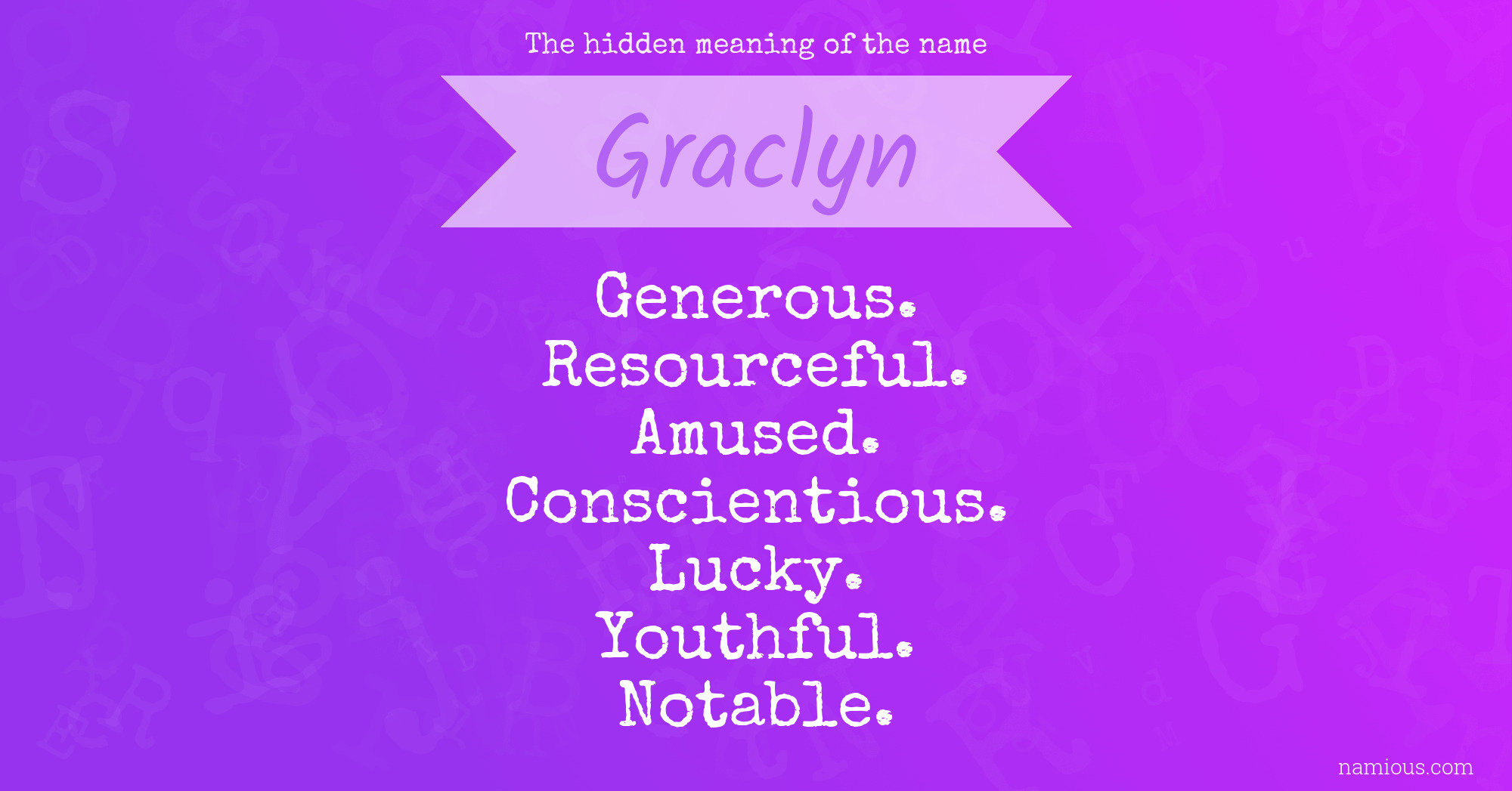 "Graclyn is a generous, resourceful, amused, conscientious, lucky, youthful and notable person."
