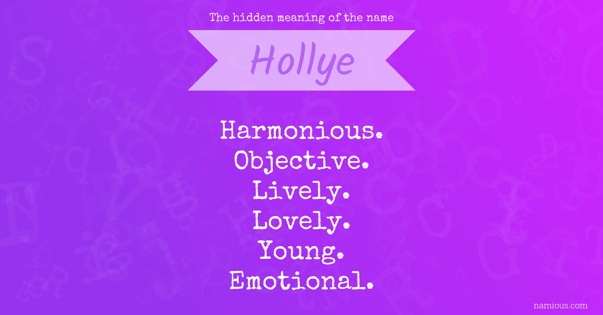 "Hollye is a harmonious, objective, lively, lovely, young and emotional person."