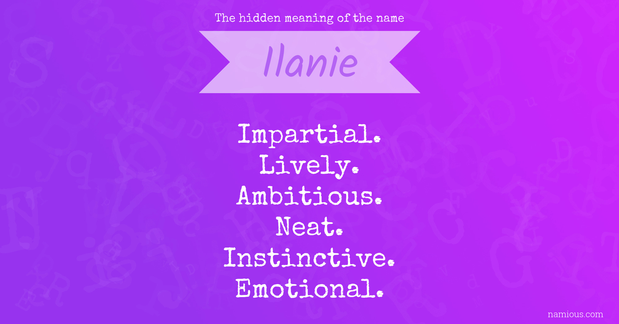 "Ilanie is an impartial, lively, ambitious, neat, instinctive and emotional person."