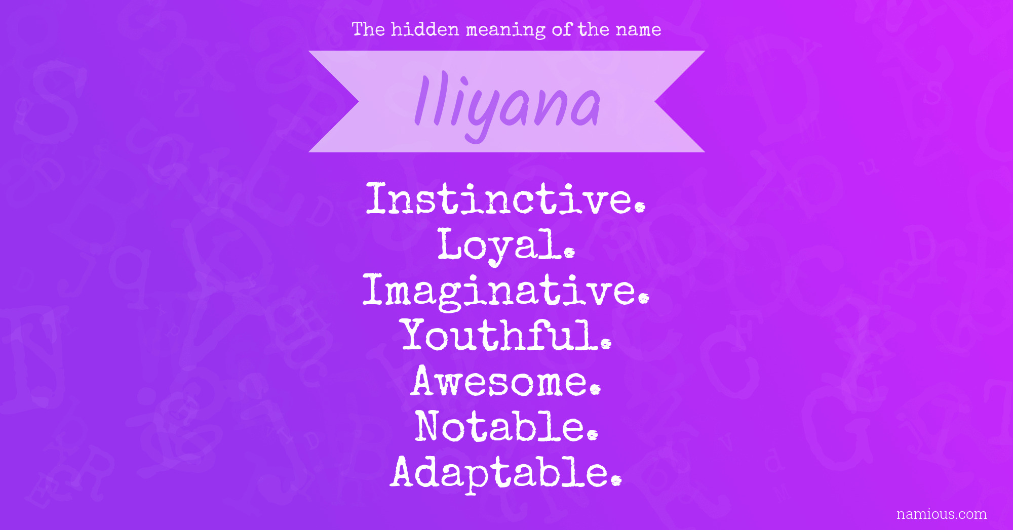 "Iliyana is an instinctive, loyal, imaginative, youthful, awesome, notable and adaptable person."