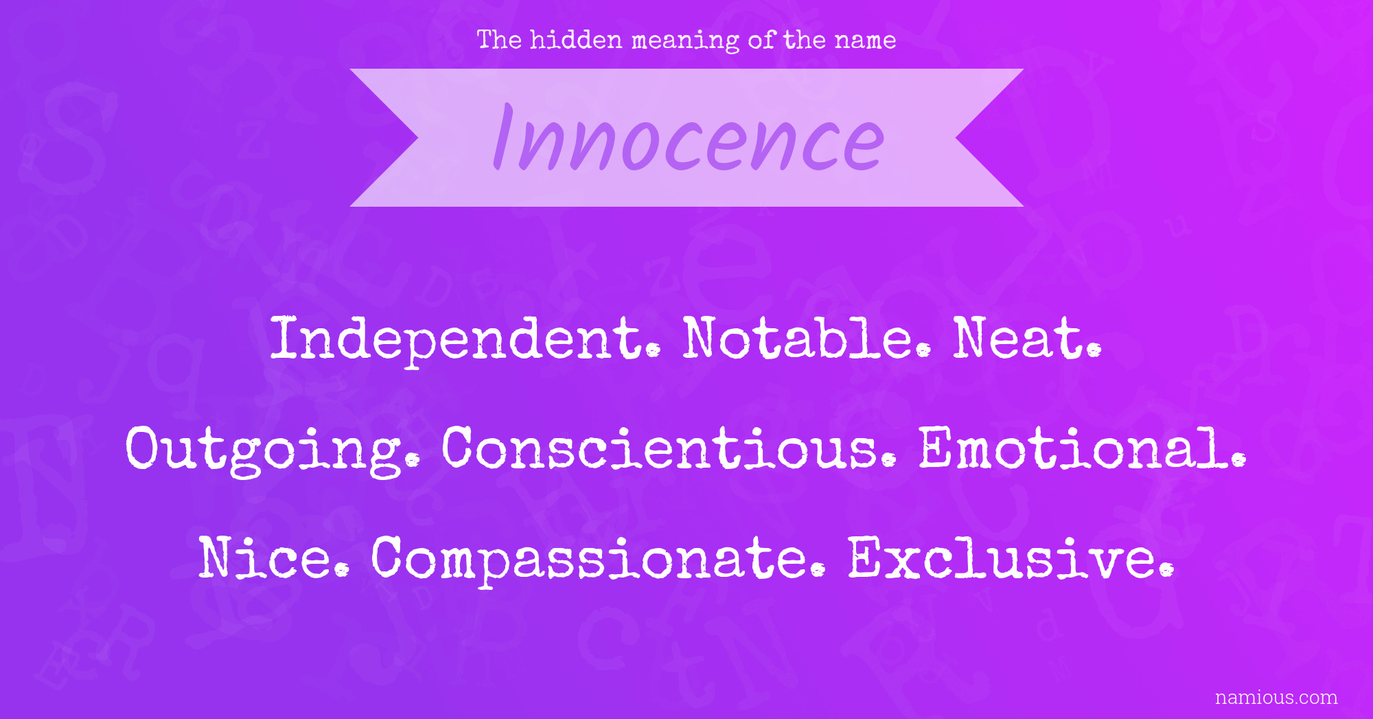 "Innocence is an independent, notable, neat, outgoing, conscientious, emotional, nice, compassionate and exclusive person."
