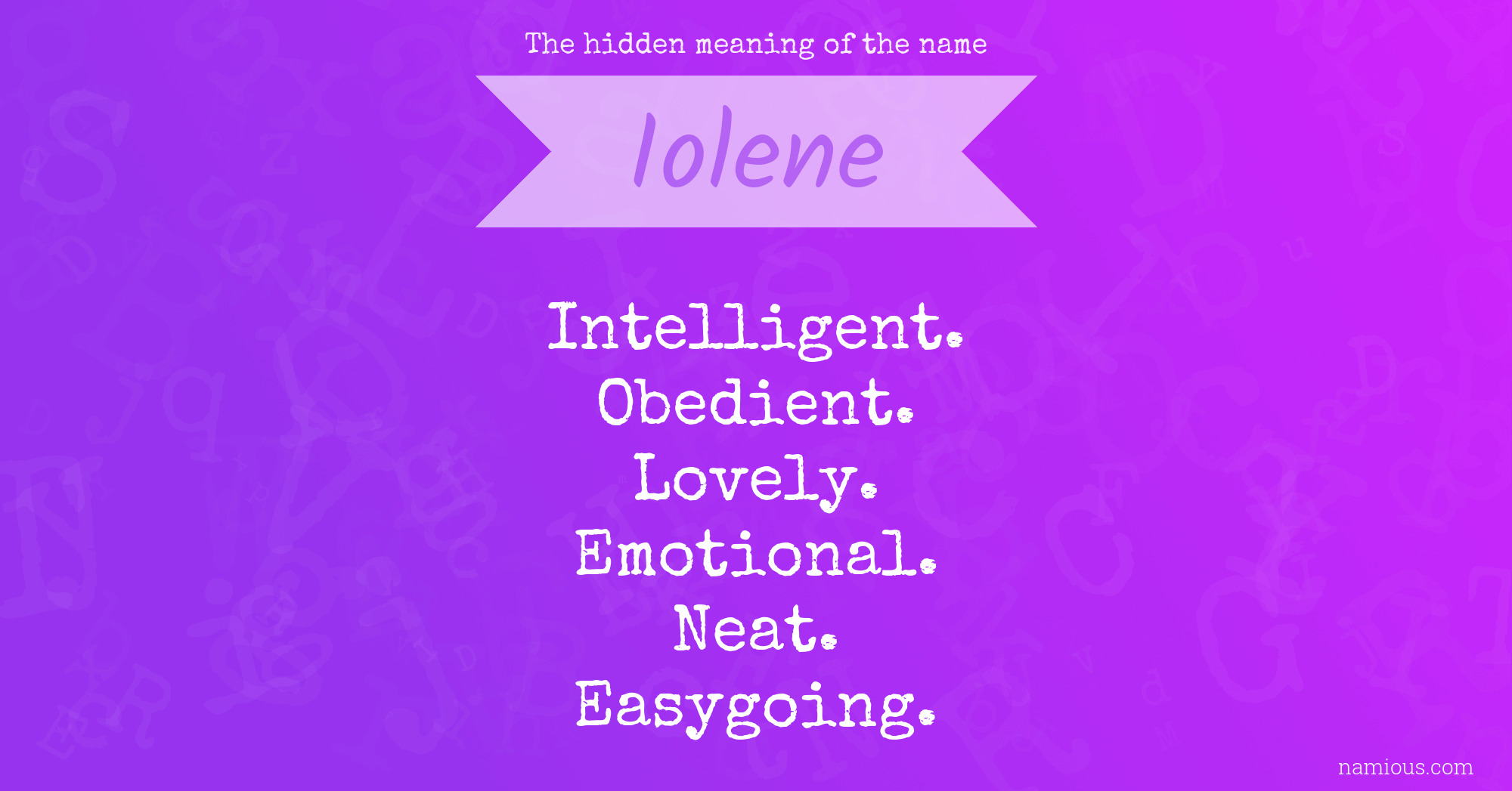 "Iolene is an intelligent, obedient, lovely, emotional, neat and easygoing person."