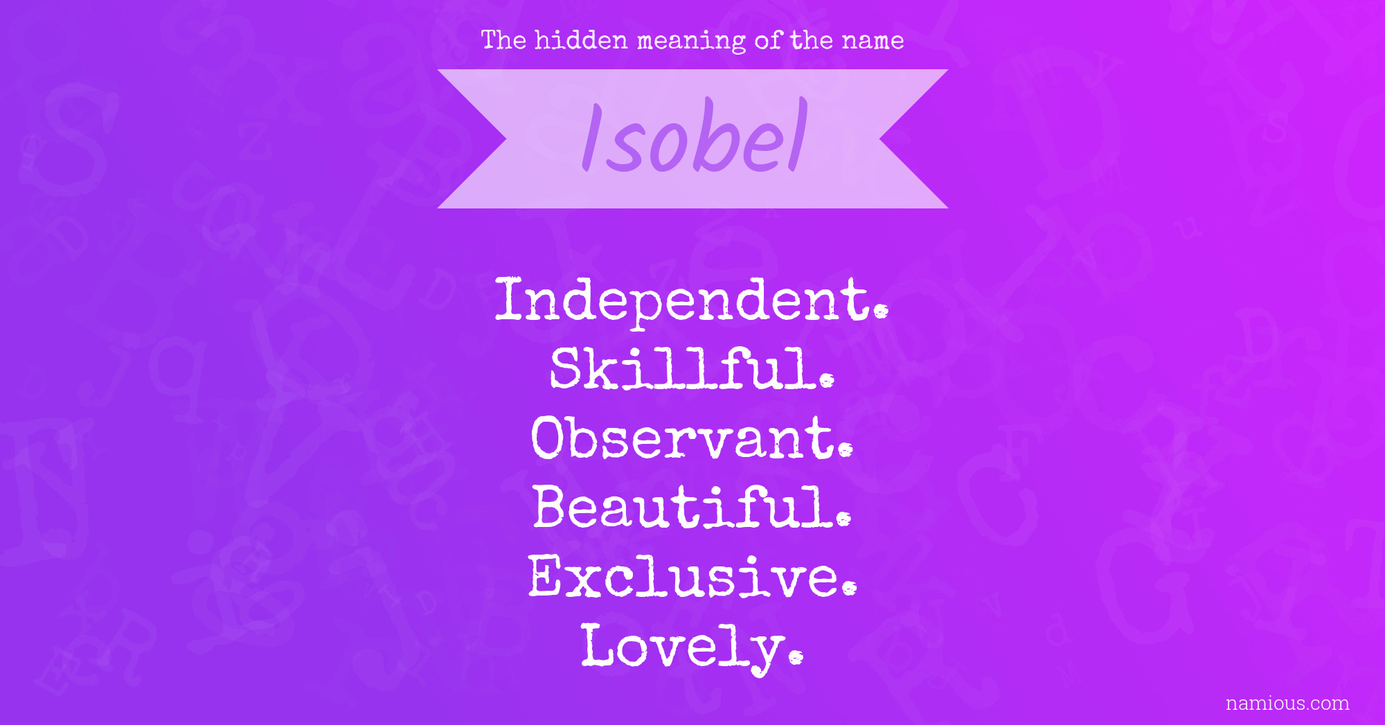 "Isobel is an independent, skillful, observant, beautiful, exclusive and lovely person."