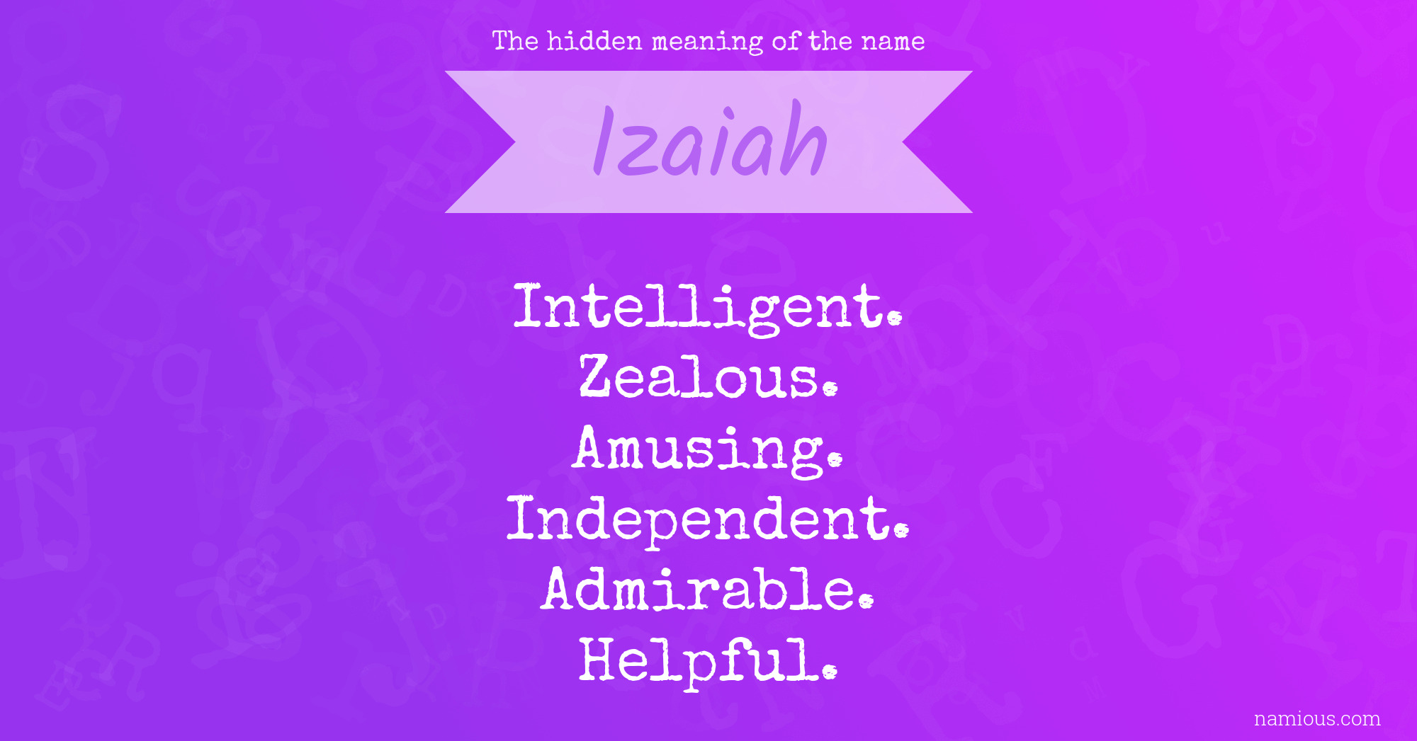 "Izaiah is an intelligent, zealous, amusing, independent, admirable and helpful person."
