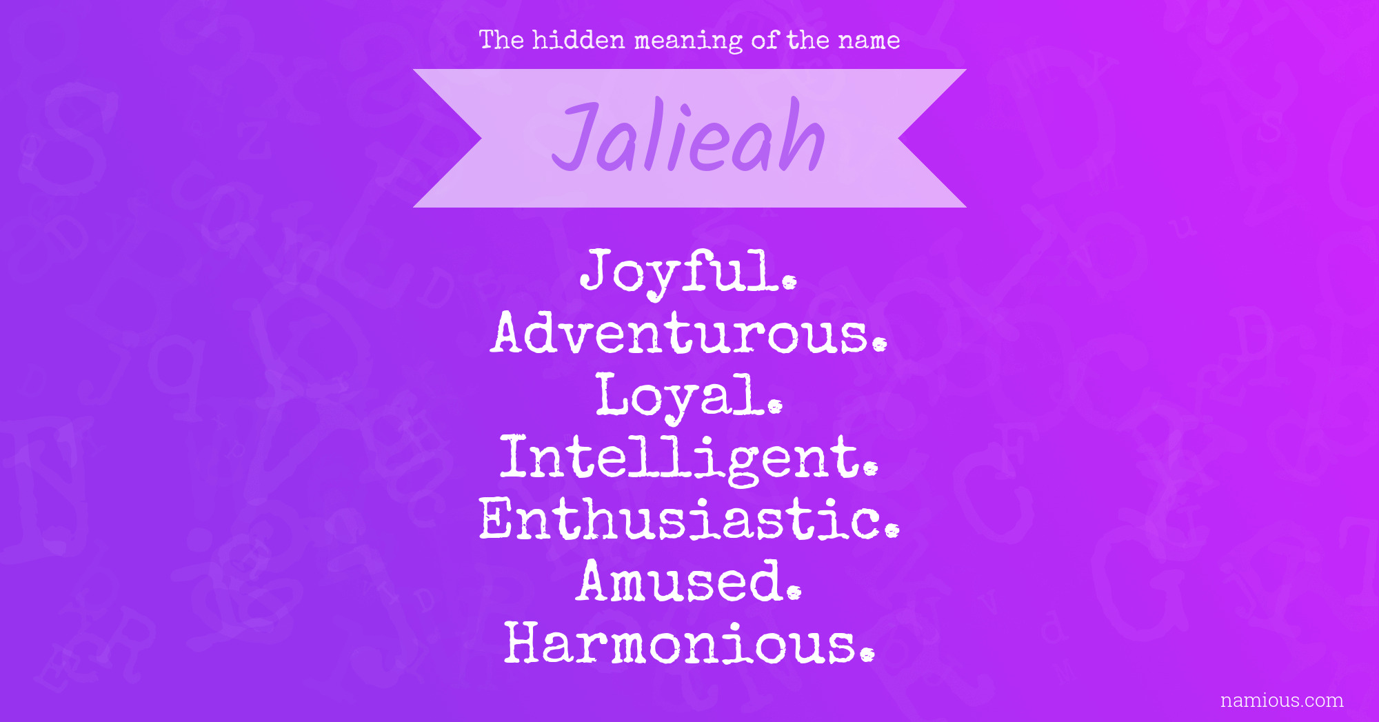 "Jalieah is a joyful, adventurous, loyal, intelligent, enthusiastic, amused and harmonious person."