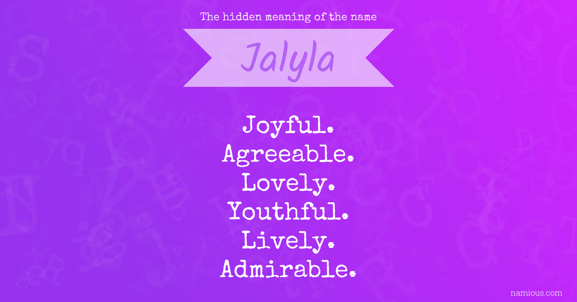 "Jalyla is a joyful, agreeable, lovely, youthful, lively and admirable person."